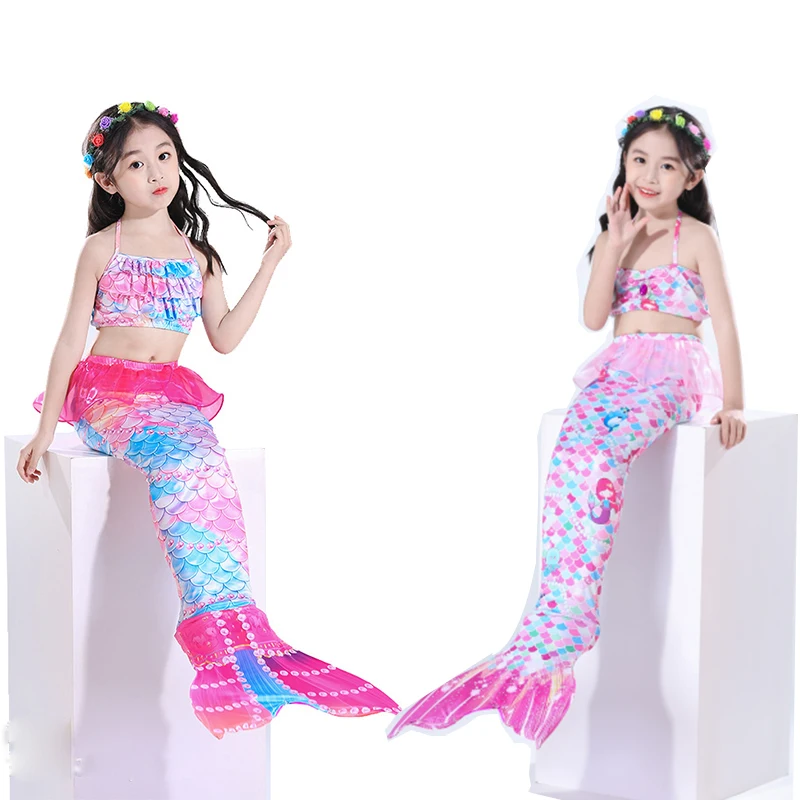 Детский костюм Русалочки Ариэль, костюм Русалочки с хвостом для косплея, маскарадное платье для маленьких девочек с хвостом, комплект бикини для плавания, купальный костюм, лето 2021