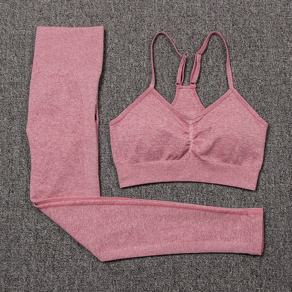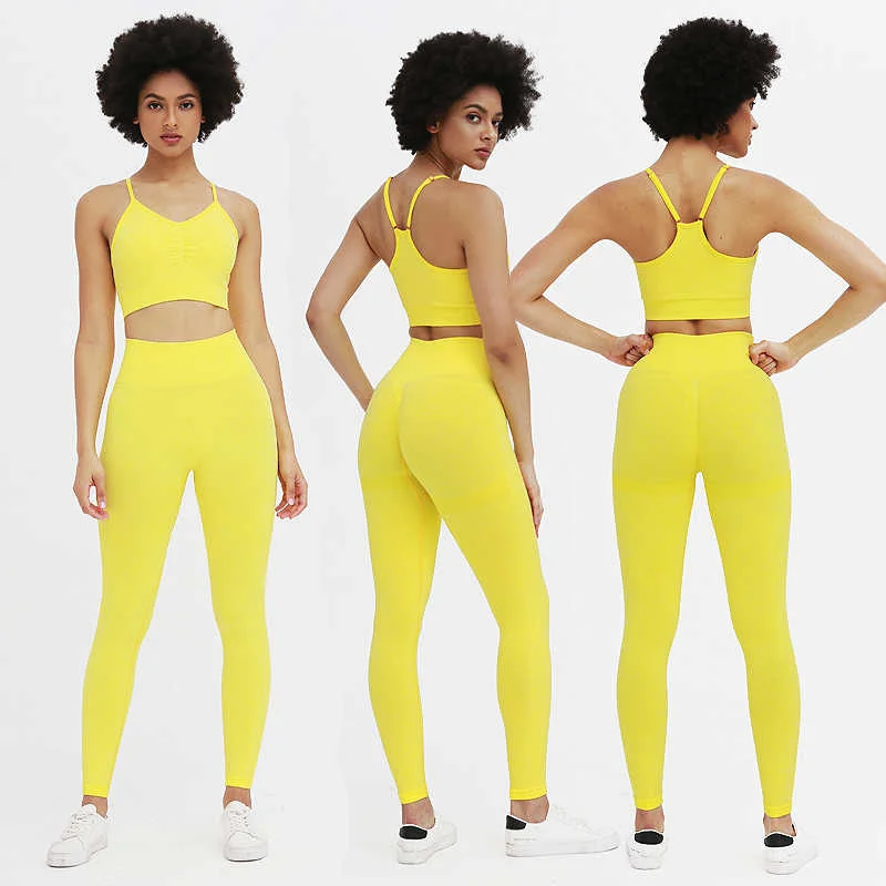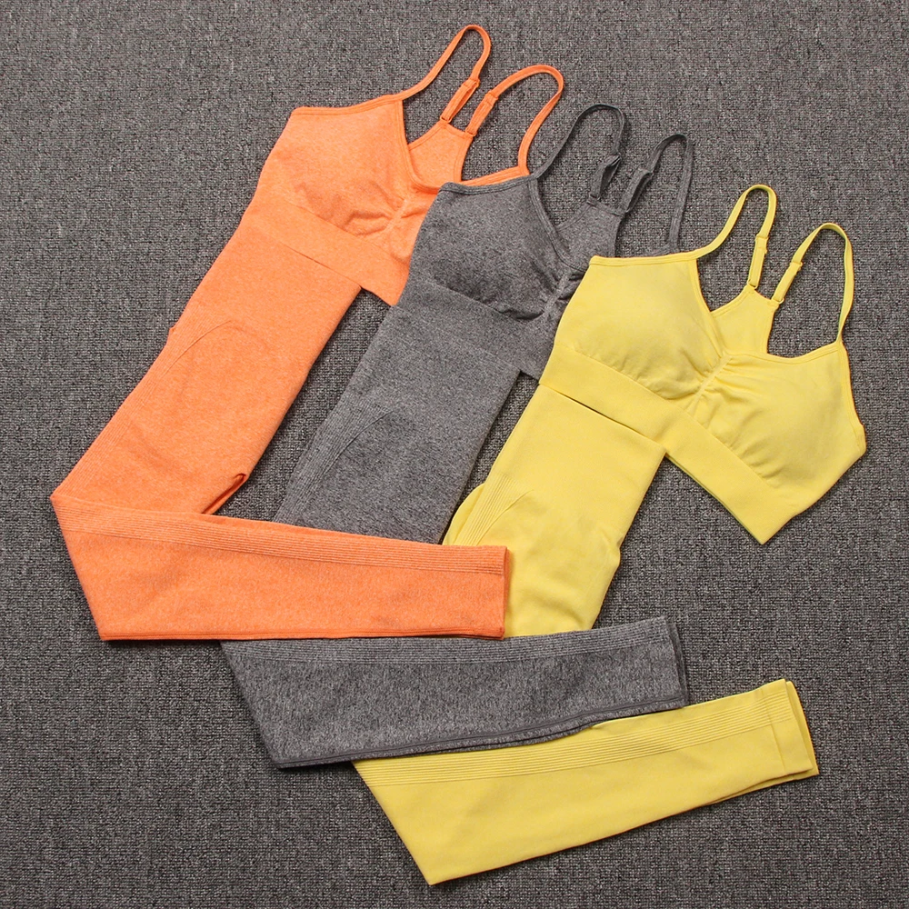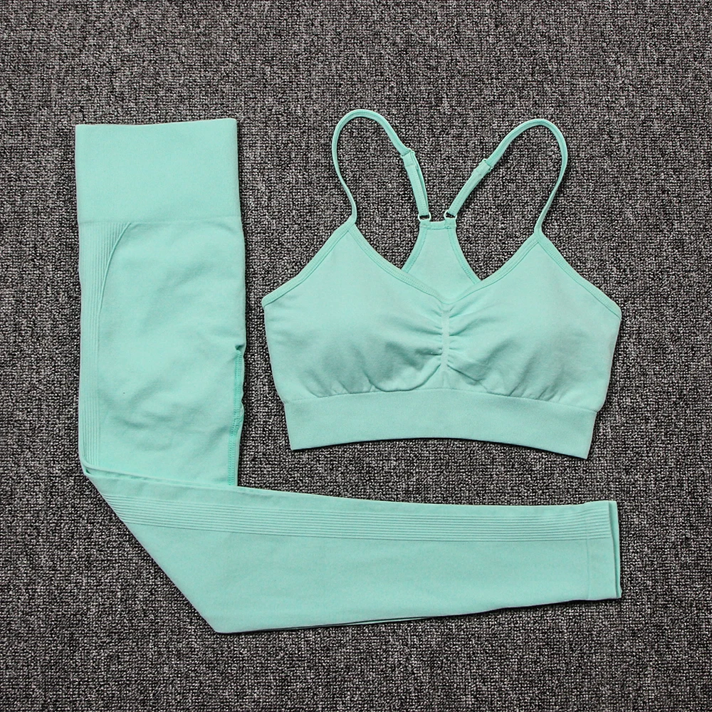 Комплект спортивный женский для фитнеса, бесшовный, с высокой талией, леггинсы и бюстгальтер, Женский комплект 2 шт.