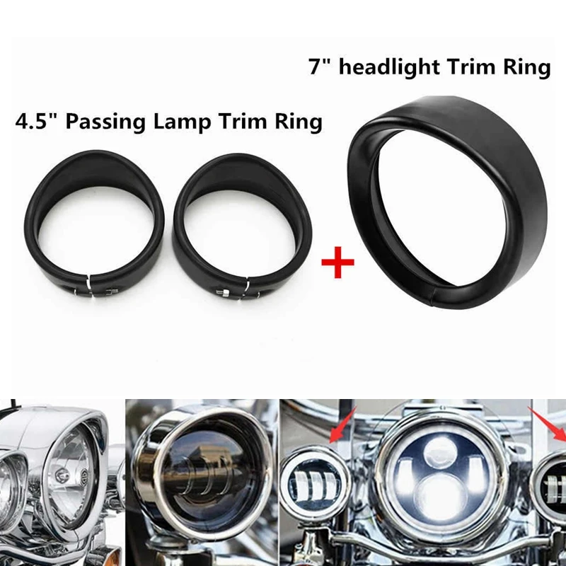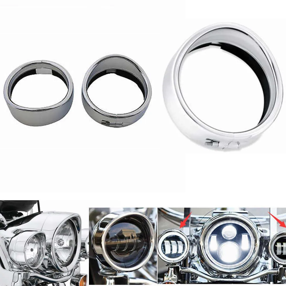 Мотоциклетная светодиодная передняя фара с 7 "мотором H4, облицовка кольца, козырек 4,5 дюйма, облицовочная кольцевая заглушка для противотуманной фары Harley Touring Street Glide FLH