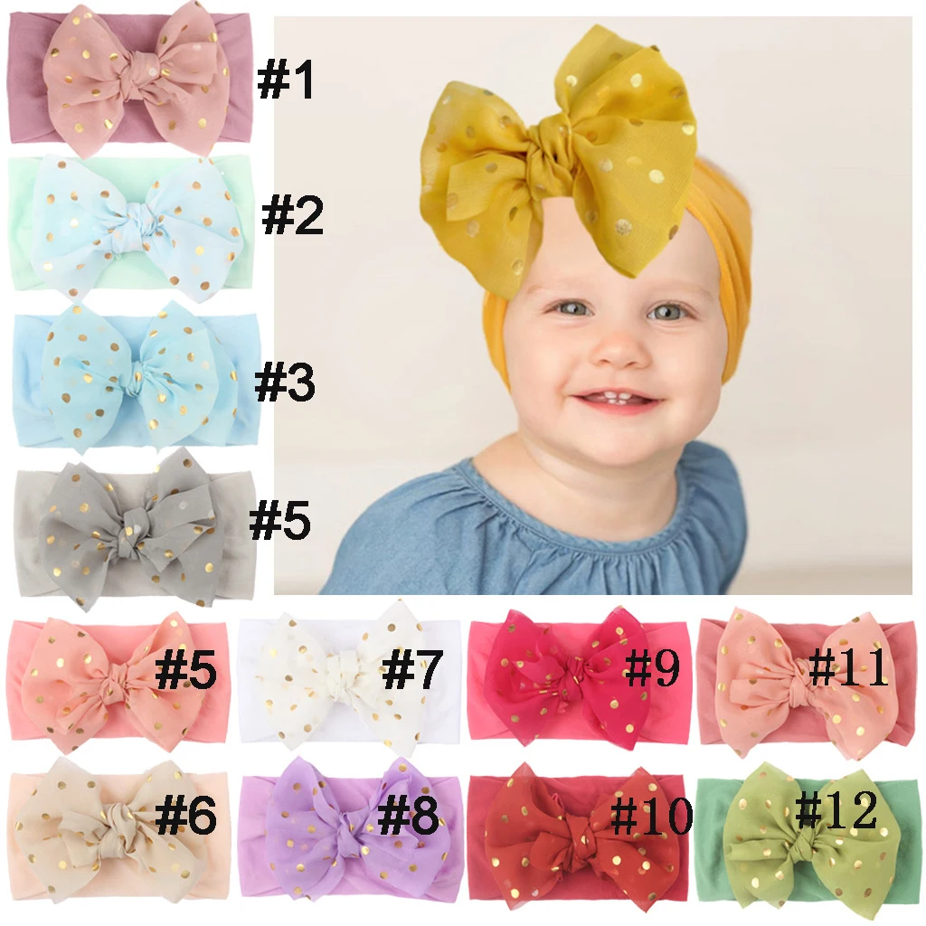 36 шт.лот новорожденных детские куртки в горошек с принтом с бантом головные повязки для волос, для завязанный резинка для волос бант из нейлона и повязка на голову для маленьких девочек; Аксессуары для волос