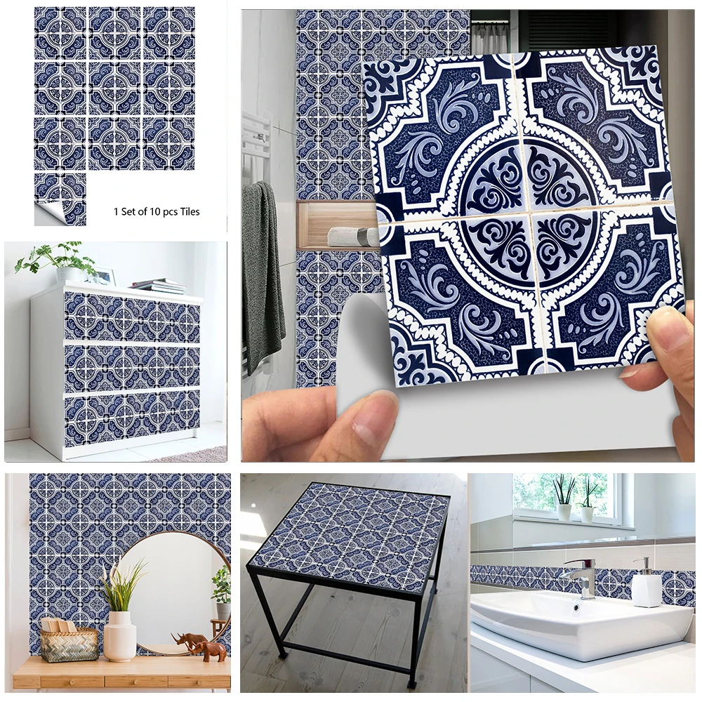 10 шт.компл. наклейка с рисунком плитки в стиле ретро, переводная Крышка для кухонных ванных столов, водонепроницаемая блестящая поверхность, художественная роспись