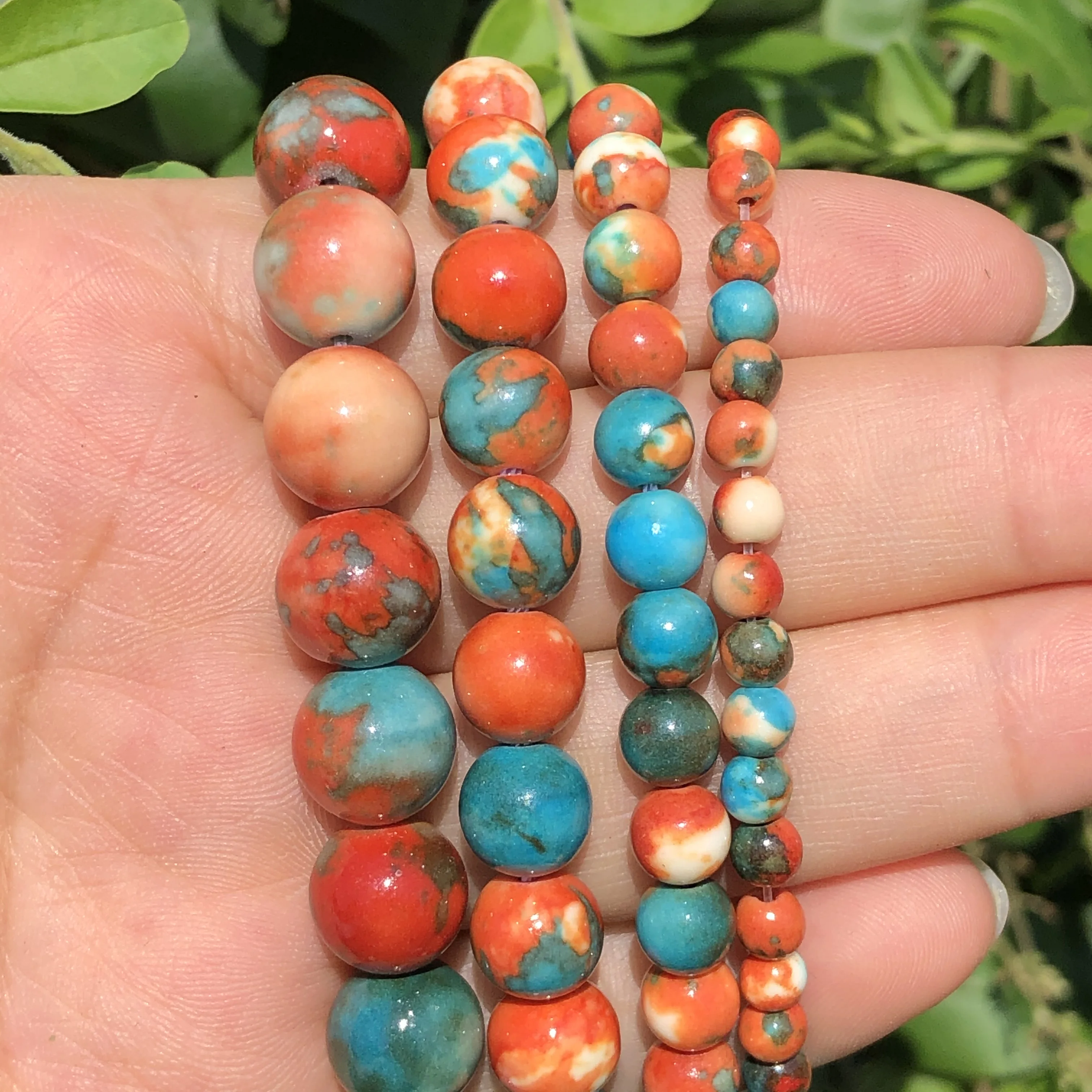 Синийзеленыйморской осадок бирюзой Императорский Ясперс Круглые бус...
