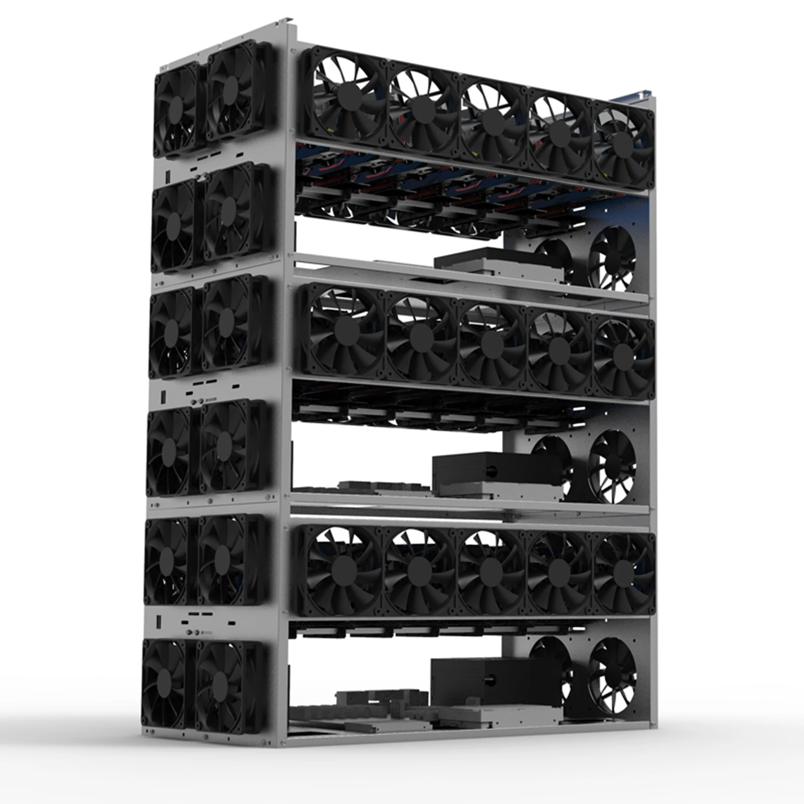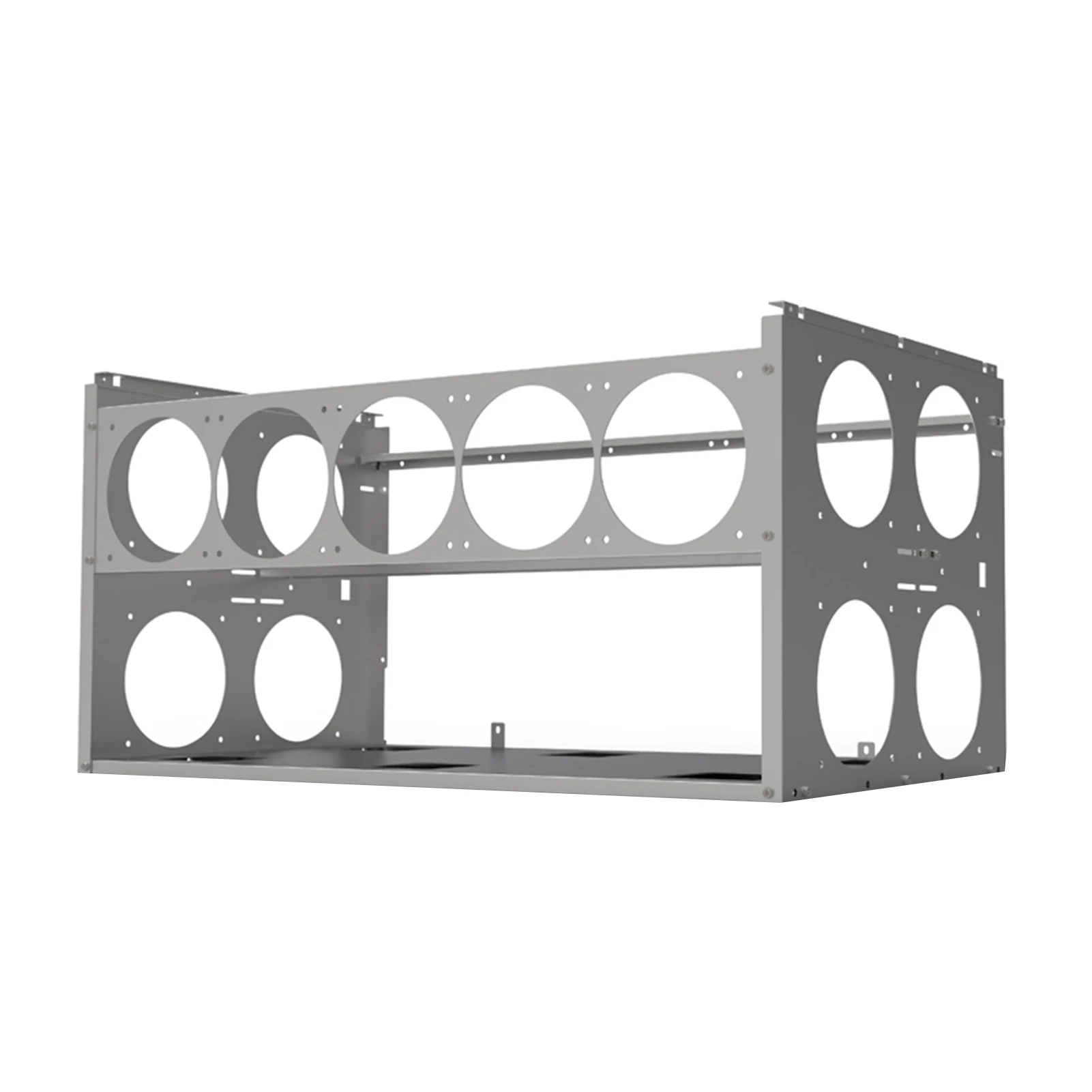 1. Этот продукт представляет собой Графический держатель для карт из листового металла с ЧПУ, который может быть сложен.2. Простота установки и прочная конструкция.Поддержка двойного источника питания.3. Разработан в соответствии со стандартными отверстиями материнских плат, видеокарт, жестких дисков и источников питания.4. Продукт является пустой полкой без вентиляторов, выключателей и ламп.5. Расстояние между 6 видеокартами 10 см, 8 графических карт 8 см, 10 видеокарт 6 см.