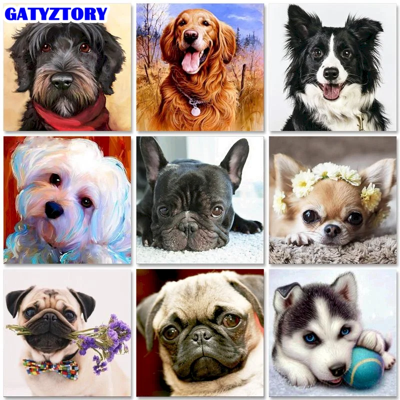 60x75 см DIY Краски ing по номеру животные собака акриловые Краски по номерам фотографии по номерам Unframe домашний Декор современный подарок