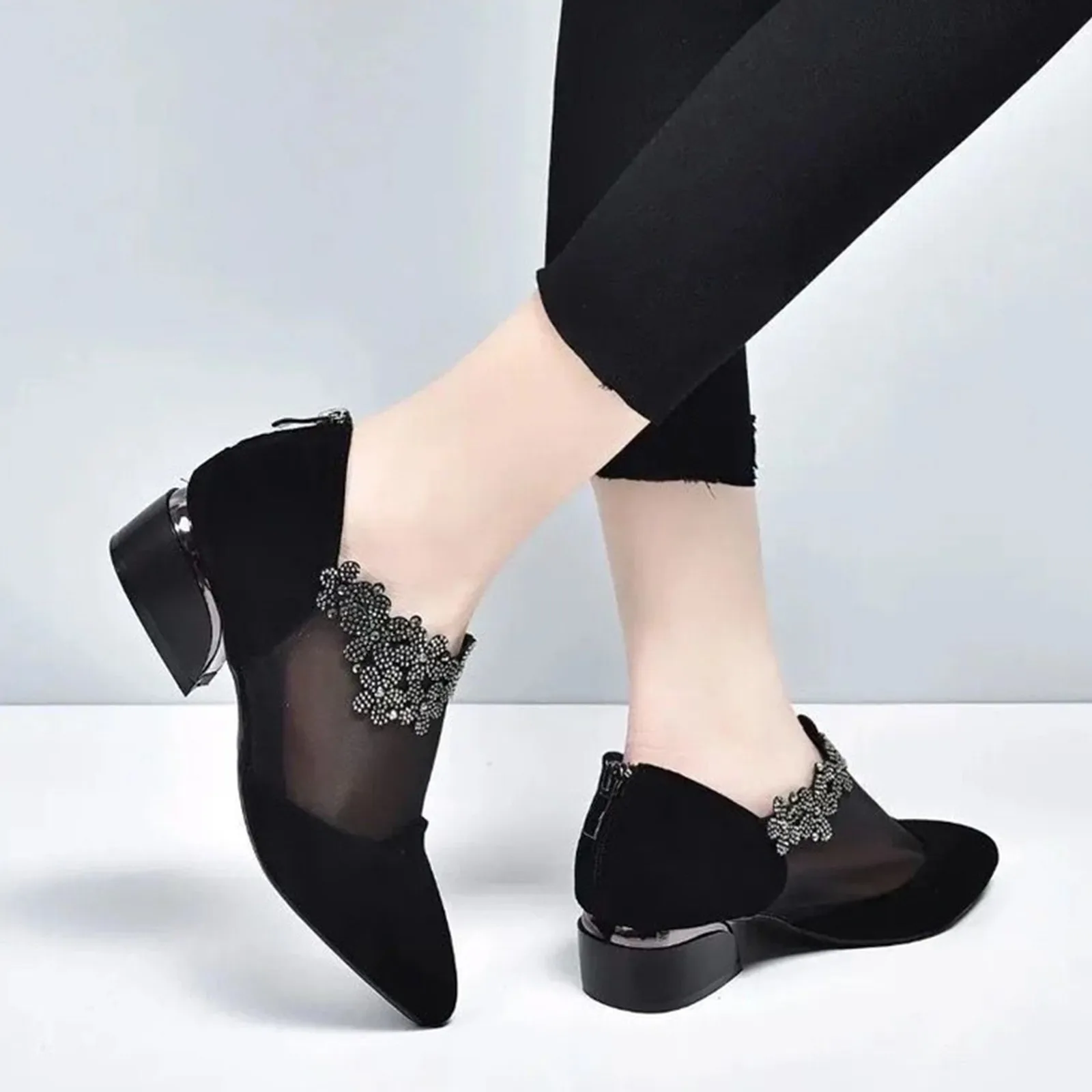 Женские летние сандалии без шнуровки; Женская обувь из искусственной кожи с сетчатым верхом и острым носком на КОНУСНОМ каблуке; Модные женские сандалии; Женская повседневная обувь; 2021