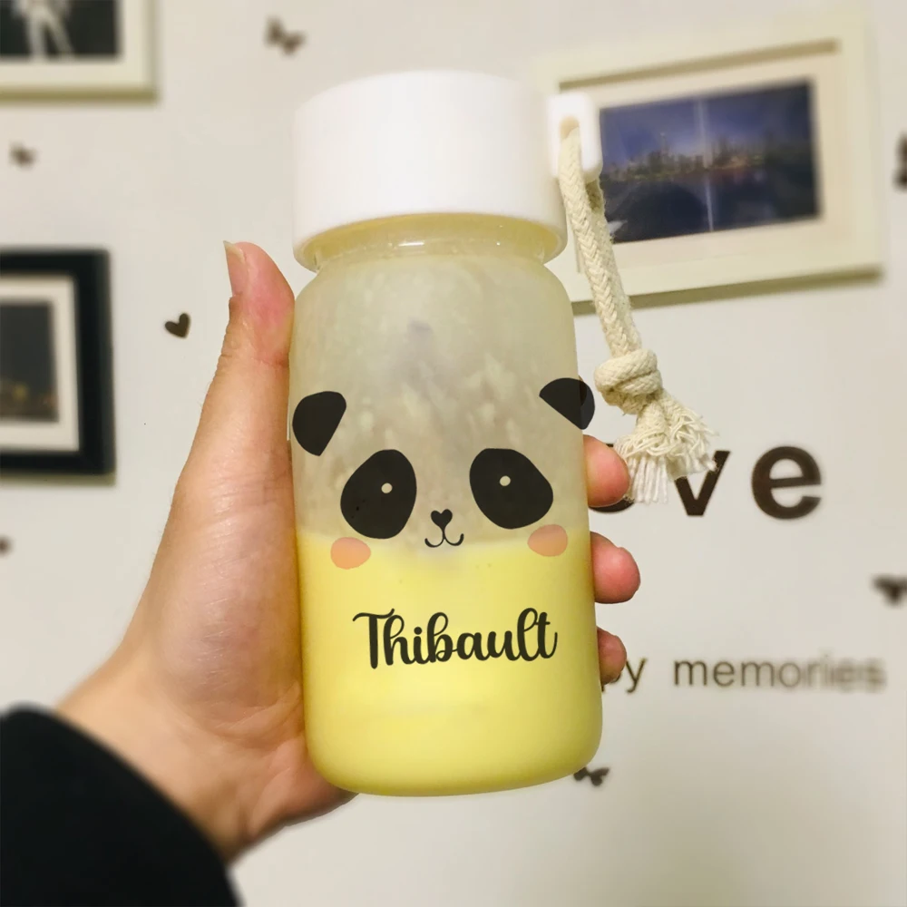 Персональная Милая Панда на заказ стеклянная бутылка для воды 11 унций здоровый лимонный сок бутылка для воды детский подарок на день рождения школьная бутылка