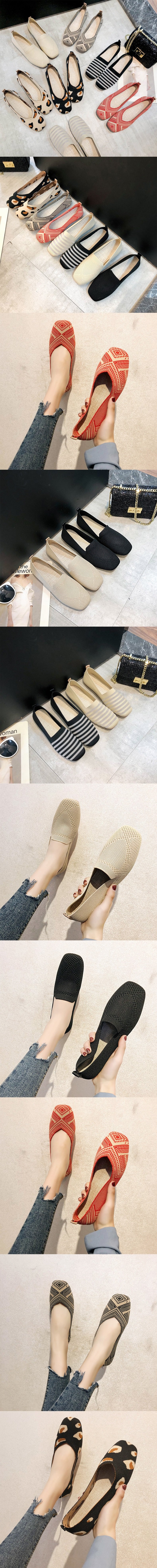 Женская обувь на плоской подошве; Тонкие балетки; Вязаная обувь без...