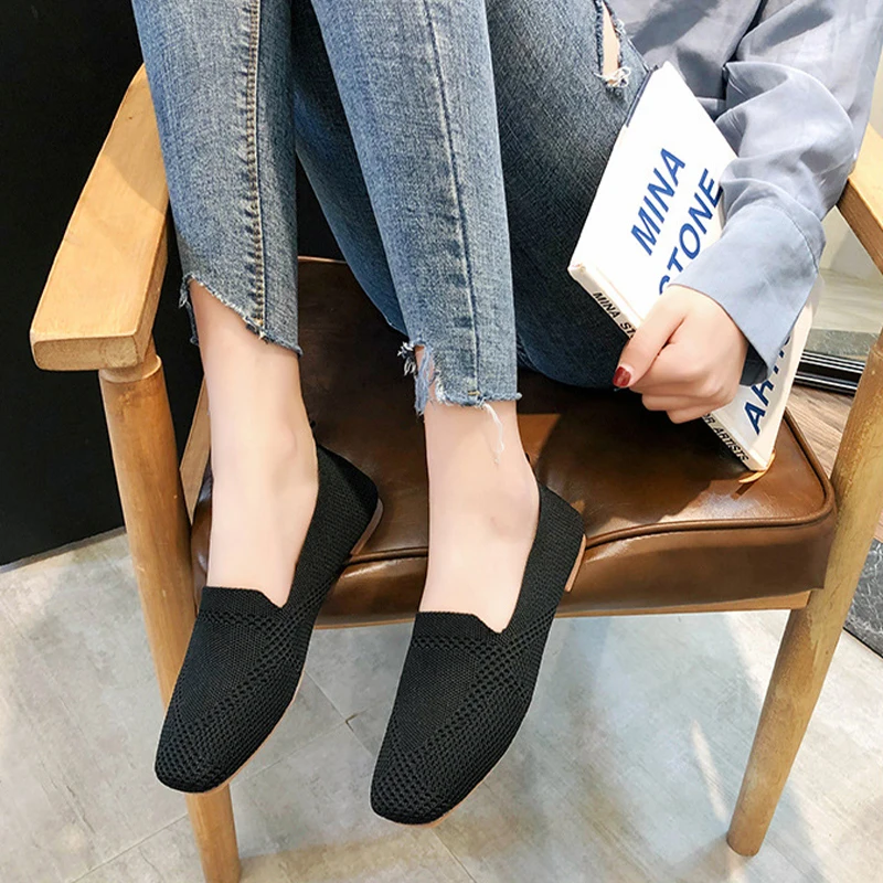Модные женские летние новые балетки, женские вязаные туфли на плоской подошве с квадратным носком, тканевые Мокасины дышащие туфли на плоской подошве для женщин, туфли для вождения
