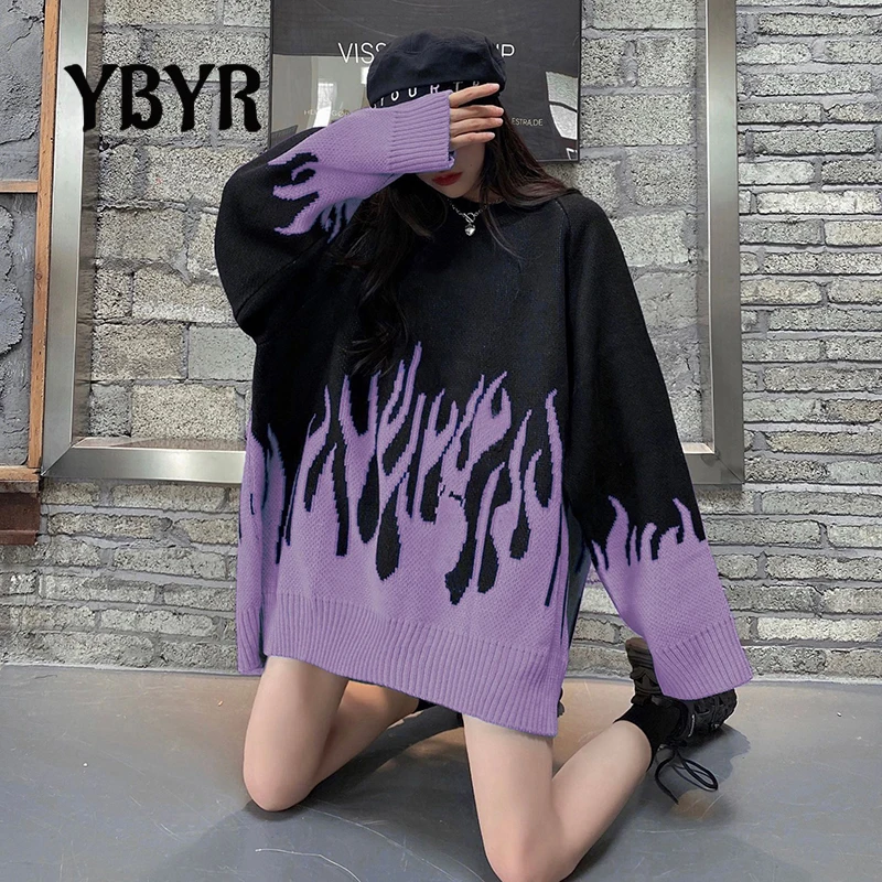 Свитер YBYR Женский, жаккардовый, свободный, в стиле хип-хоп, вязаный, большого размера, свитер Харадзюку