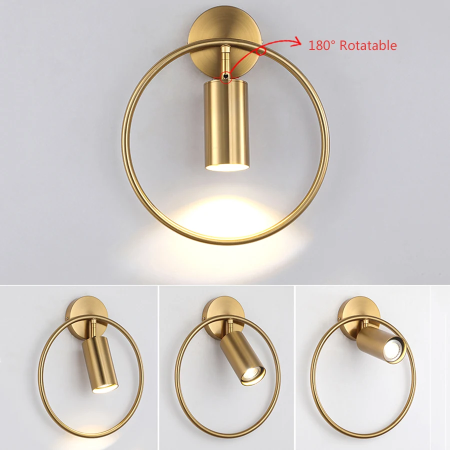 Современный светодиодный настенный светильник с кольцом GU10, золотой прикроватный настенный светильник для спальни, прикроватный настенный светильник