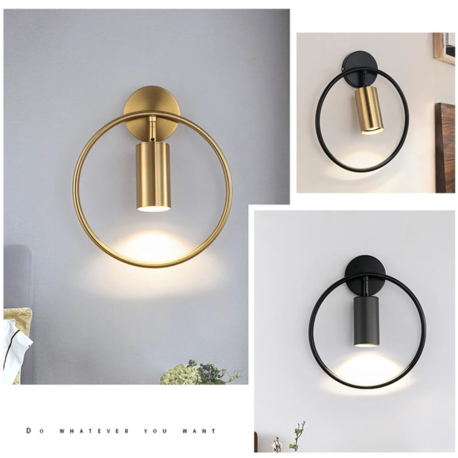 Пост современный светодиодный настенный светильник Роскошные Творческий кольцо GU10 Золотой прикроватный настенный светильник для комнаты Спальня прикроватные Настенные светильники Светильник Инж