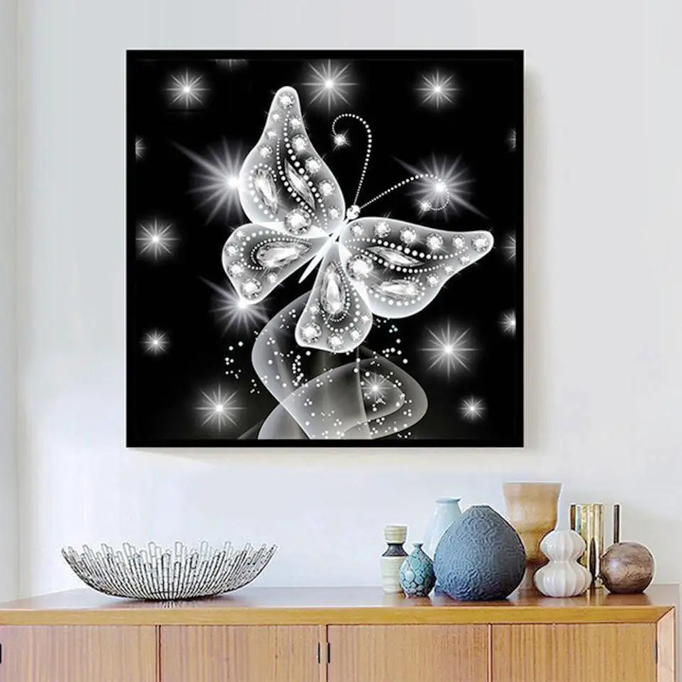 Алмазная картина 5D ручной работы "черно-белая бабочка", 3D вышивка...