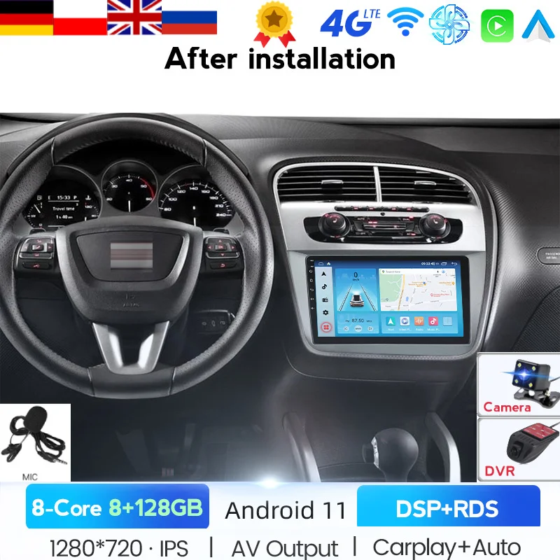 Автомобильный радиоприемник 1280x720 6G + 128G Android 10 4G LTE мультимедийная навигация GPS для Seat Leon Altea 2005-2015 2DIN без DVD BT Carplay авто