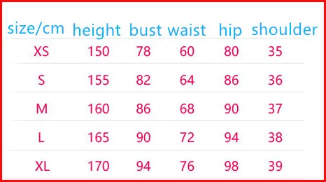 Примечание: костюм азиатского размера и может быть меньше, чем европейский или американский размер. Пожалуйста, следуйте таблице размеров. Не выбирайте напрямую. Согласно вашим привычкам.