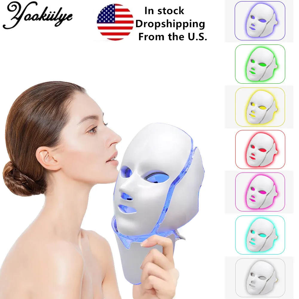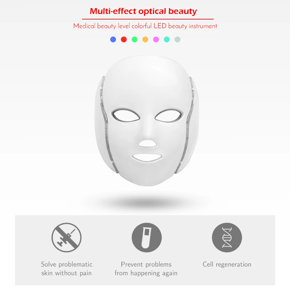 7 видов цветов Светодиодная маска для лица, фотонотерапия, маска для шеи против акне, удаление морщин, омоложение кожи, лифтинг, уход за кожей лица, инструменты