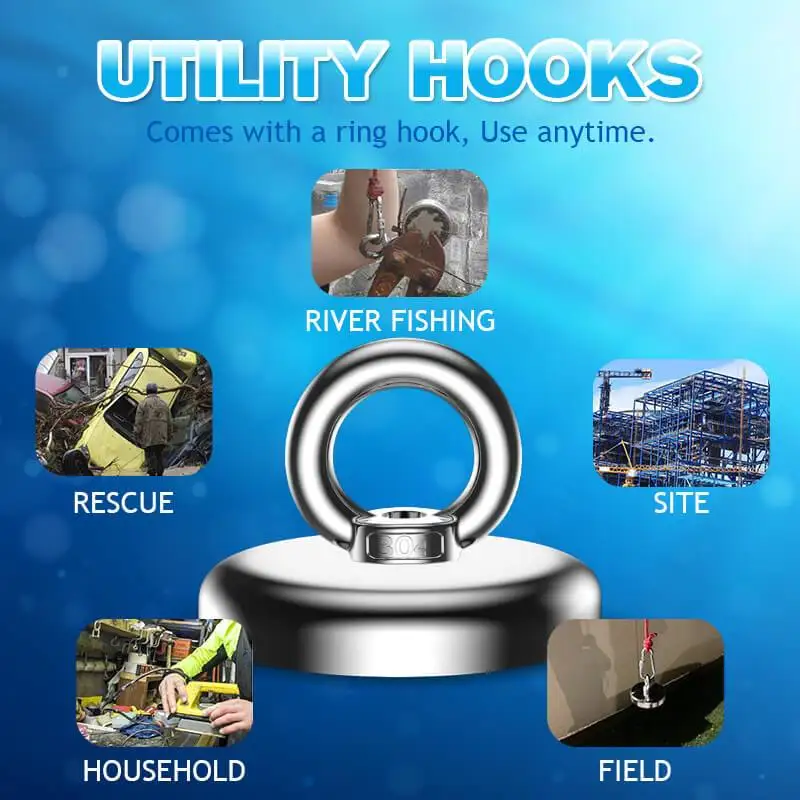 Идеальный Магнитный рыболовный инструментРыболовный магнит отлично подойдет для магнитной рыбалки, охоты за сокровищами, спасения под водой, а также поиска чего-то старого и загадочного. Используйте рыболовные магниты, чтобы найти недостающие металлические детали в вашей мастерской или домашнем дворе.