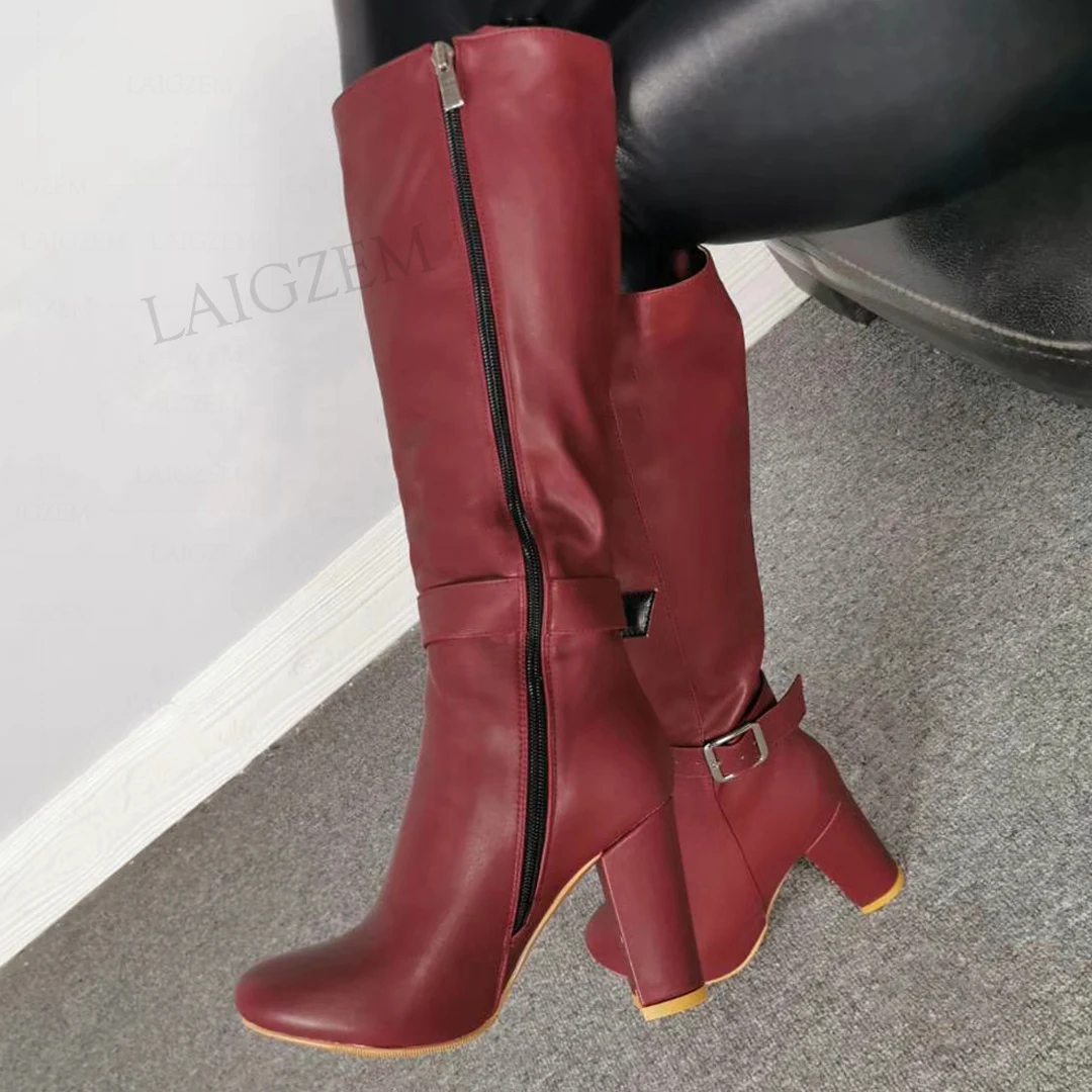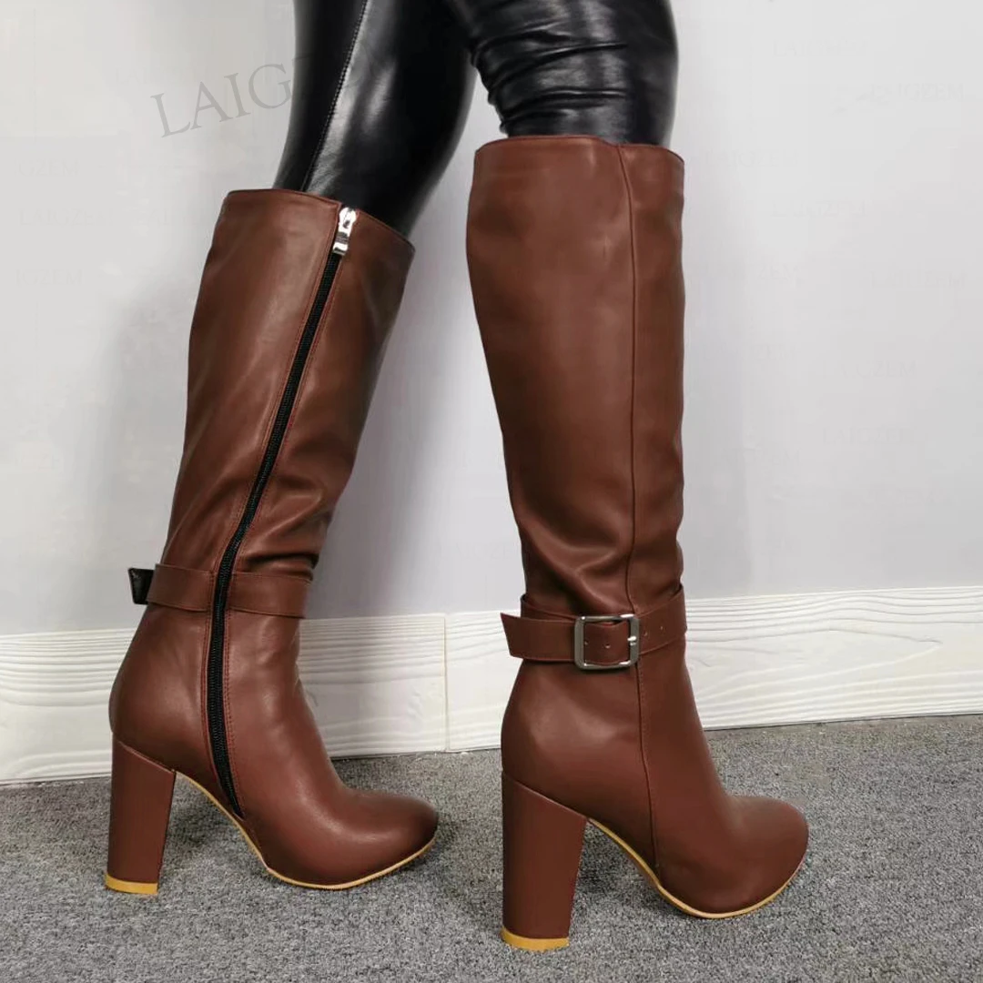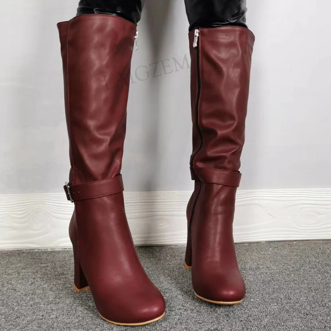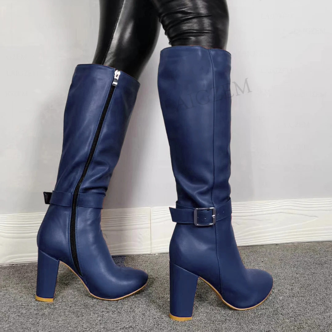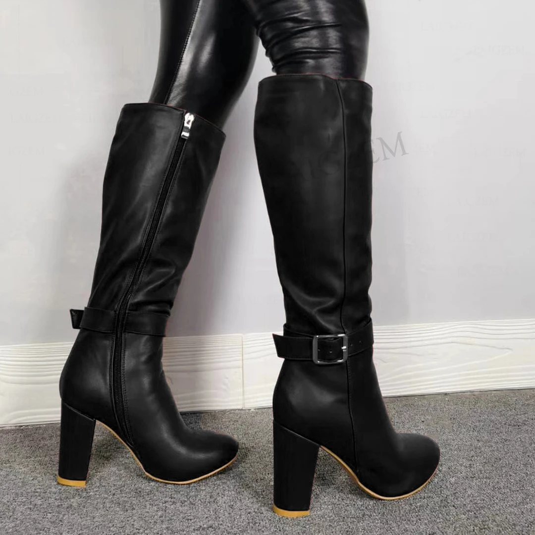 SEIIHEM/женские сапоги до колена высокие сапоги на молнии, на толстом каблуке, с круглым носком женская обувь из искусственной кожи Большие размеры 40, 43, 47, 52