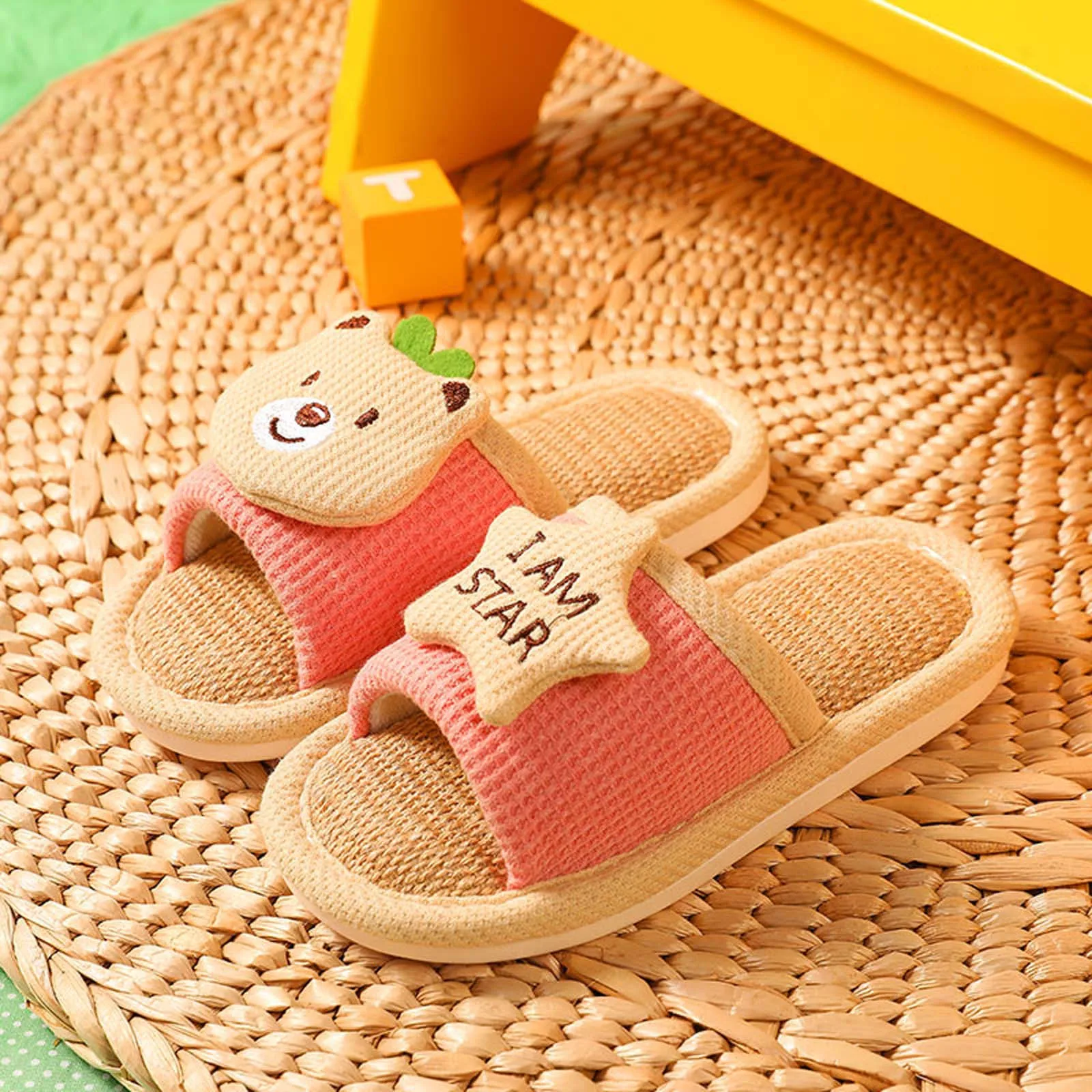 Тапки Домашние детские из льна и хлопка, дышащие, Нескользящие, для начинающих ходить мальчиков и девочек, модные милые тапочки для девочек