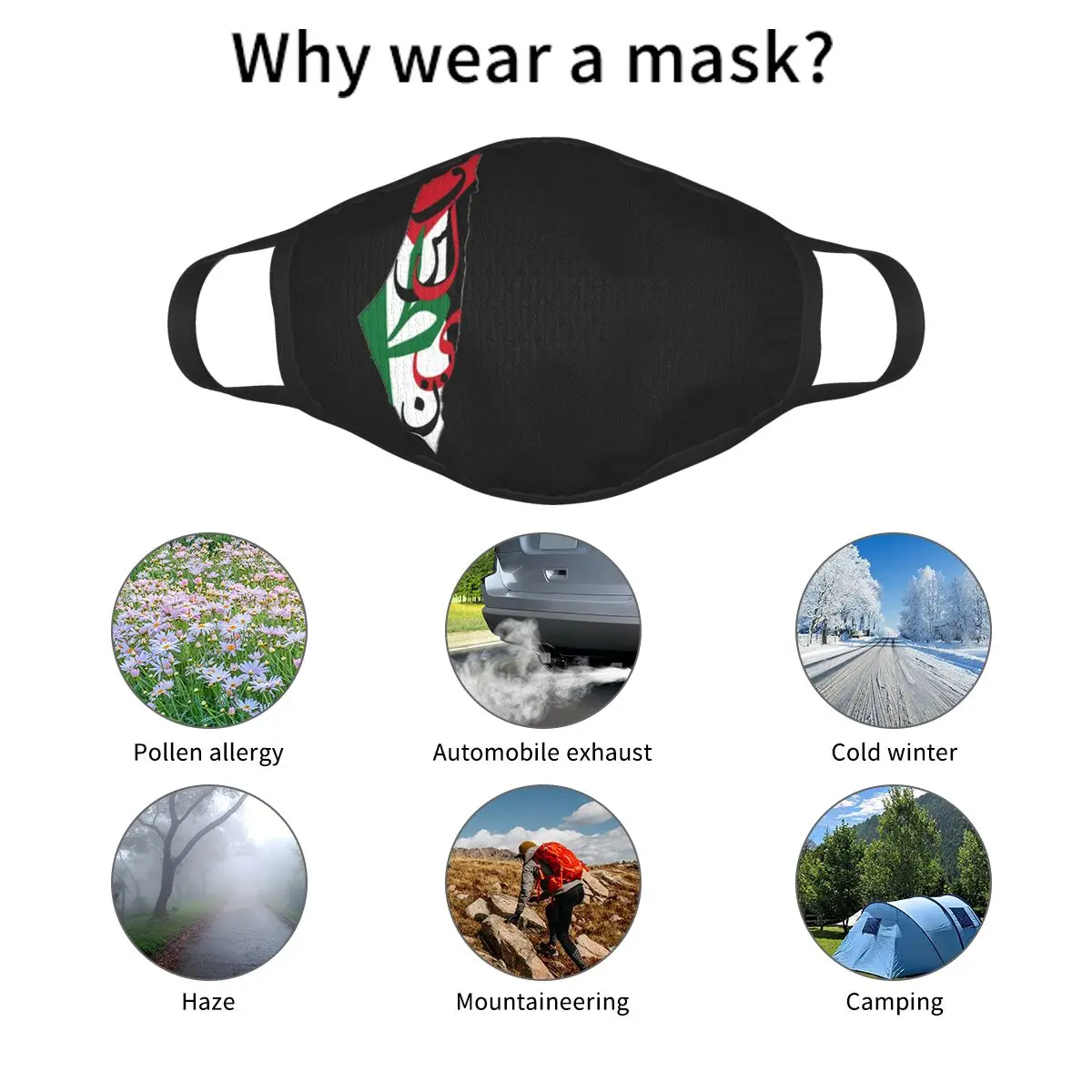 Маска для лица, не одноразовая, с изображением карты Палестины на арабском языке, маска против смога, респиратор, маска для рта