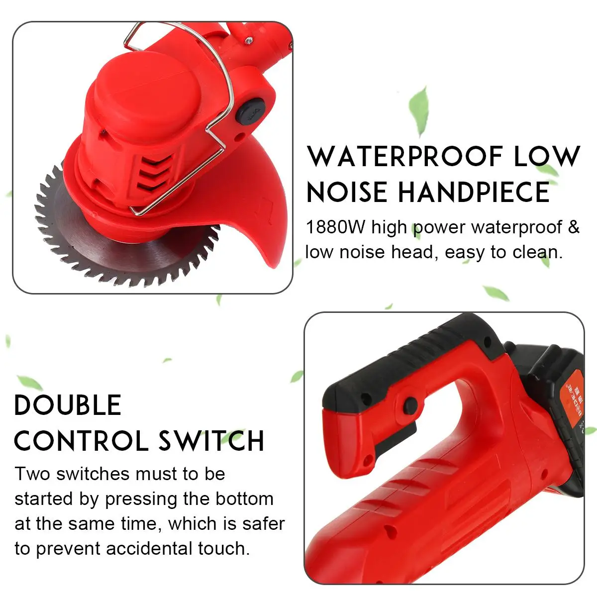 Триммер садовый беспроводной, 42 в, 1880 ВтСпецификация:Мощность: 1880 ВтНапряжение: 42 вЕмкость аккумулятора: 13000 мАчСкорость: 21000 об/минРегулируемая длина: 90 ~ 120 см/35,4 ~ 47,2 дюймаДополнительный цвет: зеленый/красный/черныйДополнительный рисунок: 1 набор батарей/2 набора батарейОсобенности:-1880 Вт Высокая мощность водонепроницаемая и малошумная головка, легко моется.-С помощью валика вы легко сможете переместить в любое место, которое вам нужно обрезать.-Конструкция беспроводной литиевой батареи, низкое энергопотребление и низкий уровень шума.-Благодаря защитной плате для травы, она может предотвратить разбрызгивание во время прополки.-Легко заниматься с иллюминаторами, волнообразной местностью, газонной кромкой, клумбой, под цветочной решеткой и другими зонами.-Косить траву на ровном грунте, быстро обрезать траву на газоне, с гибким углом, и быстро подрезать Наклонный стог сена.-Специальный забор для защиты растений может эффективно предотвратить травмирование цветочной детской, а специальная перегородка может эффективно предотвратить разбрызгивание травы.-Переключатель двойного управления, два переключателя необходимо запускать одновременно нажатием на нижнюю часть, что безопаснее для предотвращения случайного прикосновения.-Эргономичная конструкция ручки-помощника, ручка может регулировать направление по желанию, ее удобно держать, и она не устает долго работать.Посылка входит:Узор 1:1 x Электрический беспроводной триммер1 аккумулятор 42 в1 x Зарядное устройство1x40 зубчатое лезвие2 лезвия из сплаваПластиковое лезвие 5 шт.1 гаечный ключ1 x вспомогательная ручка1 ролик1 x Руководство пользователяУзор 1:1 x Электрический беспроводной триммерАккумулятор 2x42 в1 x Зарядное устройство1x40 зубчатое лезвие2 лезвия из сплаваПластиковое лезвие 5 шт.1 гаечный ключ1 x вспомогательная ручка1 ролик1 x Руководство пользователяПримечания:1. Измерения выполнены вручную, пожалуйста, учитывайте погрешность в 1-3 см, спасибо.2. Пожалуйста, оставьте нам сообщение о предпочитаемом вами цвете и узоре, иначе мы отправим его случайным образом.3. Из-за различий между различными мониторами изображение может не отражать фактический цвет изделия. Мы гарантируем, что стиль такой же, как и на фотографиях. Спасибо за понимание!