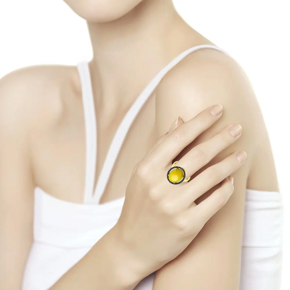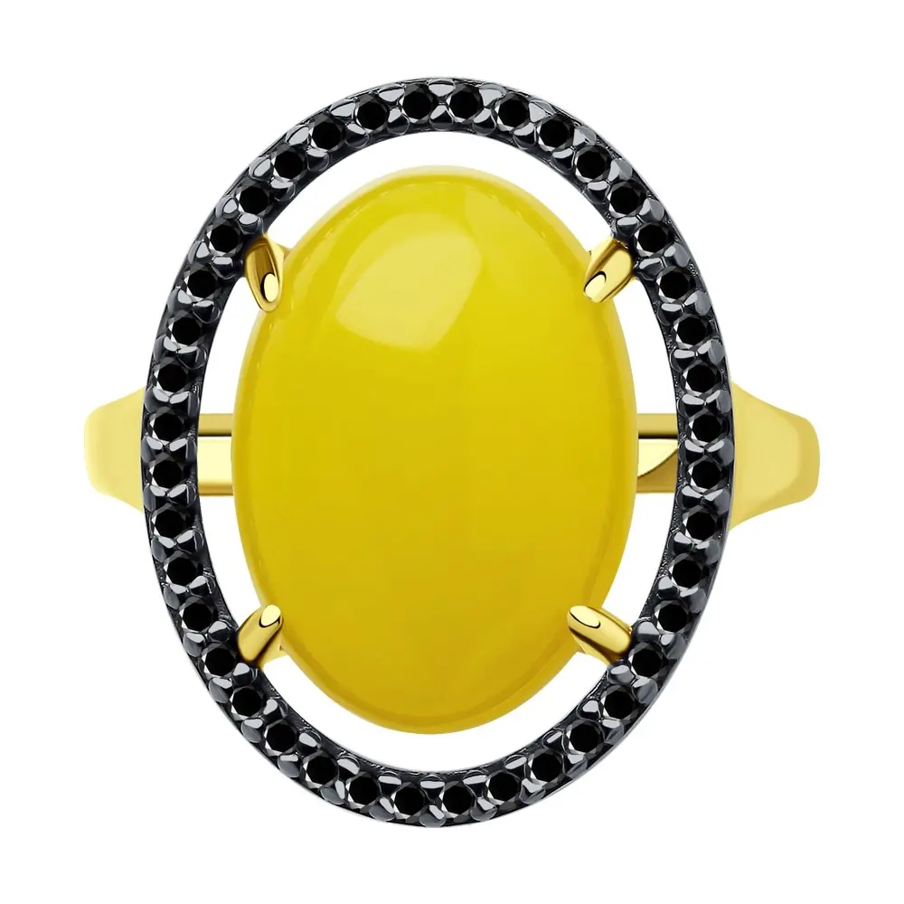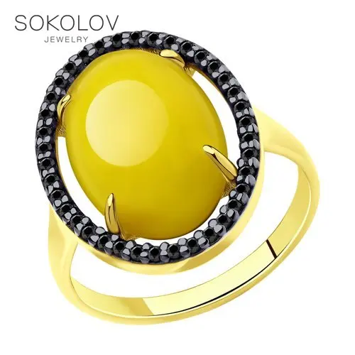Кольцо SOKOLOV из золочёного серебра с фианитами и янтарём
