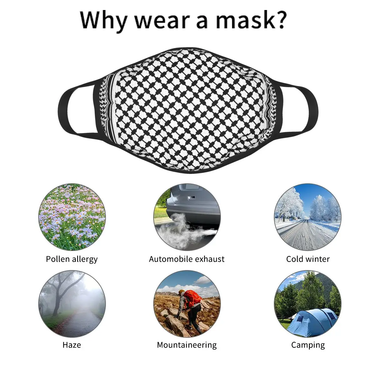 Маска для лица черная, многоразовая, от дымки