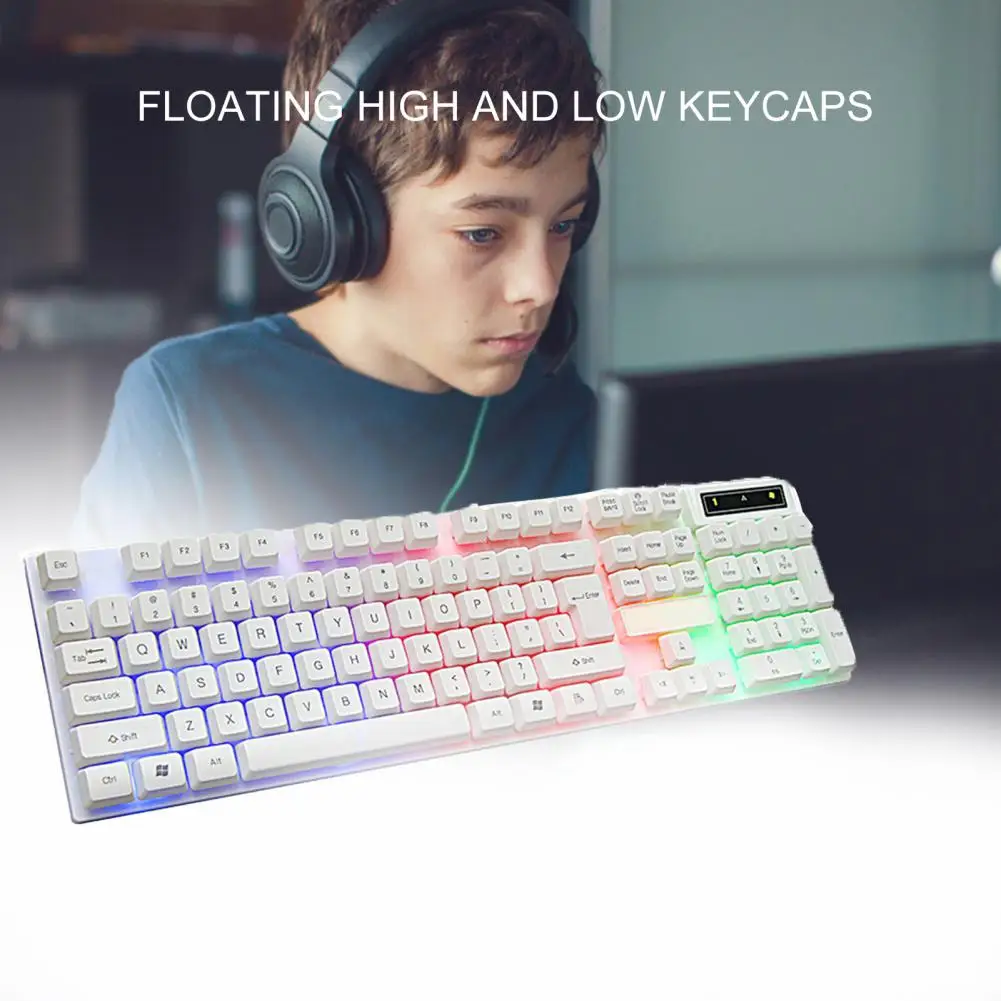 ! Мышь в комплект не входит!K6 универсальная светящаяся Механическая USB Проводная клавиатура с подсветкой для ПК компьютераОписание:Keycap предназначен для имитации прочности механических клавиш. Не только ключевое путешествие короткое, но нет ключевой карты, и он имеет срок службы 30 миллионов нажатий клавиш.Клавиатура разработана с красочными эффектами подсветки, и ее можно выключить или включить одной кнопкой без установки программного обеспечения.Изготовлен из высококачественного АБС-пластика и металлических материалов, Клавиатура прочная и стабильная на рабочем столе, что затрудняет перемещение. Кроме того, в общей сложности 6 рядов колпачков спроектированы с разной высотой от верха до низа, что будет эффективно соответствовать дуге руки при поступлении с разных высот, помогает уменьшить усталость пальцев и значительно улучшить управляемость игры.Длина клавиатура является 43 см для ухода за ребенком для мам, ширина составляет 12,3 см, а высота 2,8 см.Подходит для ПК, ноутбука. Планшет, офис, дом, Рабочий стол и т. Д.Название товара: клавиатураМатериал: АБС-пластик, металлИнформация о размере:Размеры: 43 см x 12,3 см x 2,8 см/16,93 "x 4,84" x 1,1 "(прибл.)Примечания:Благодаря светильник и экрана Цвет Товара может быть s светильник ly отличается из-за характеристик монитора компьютера.Возможны незначительные отклонения в размерах из-за различных измерений вручную.Посылка включает в себя:1 x клавиатура