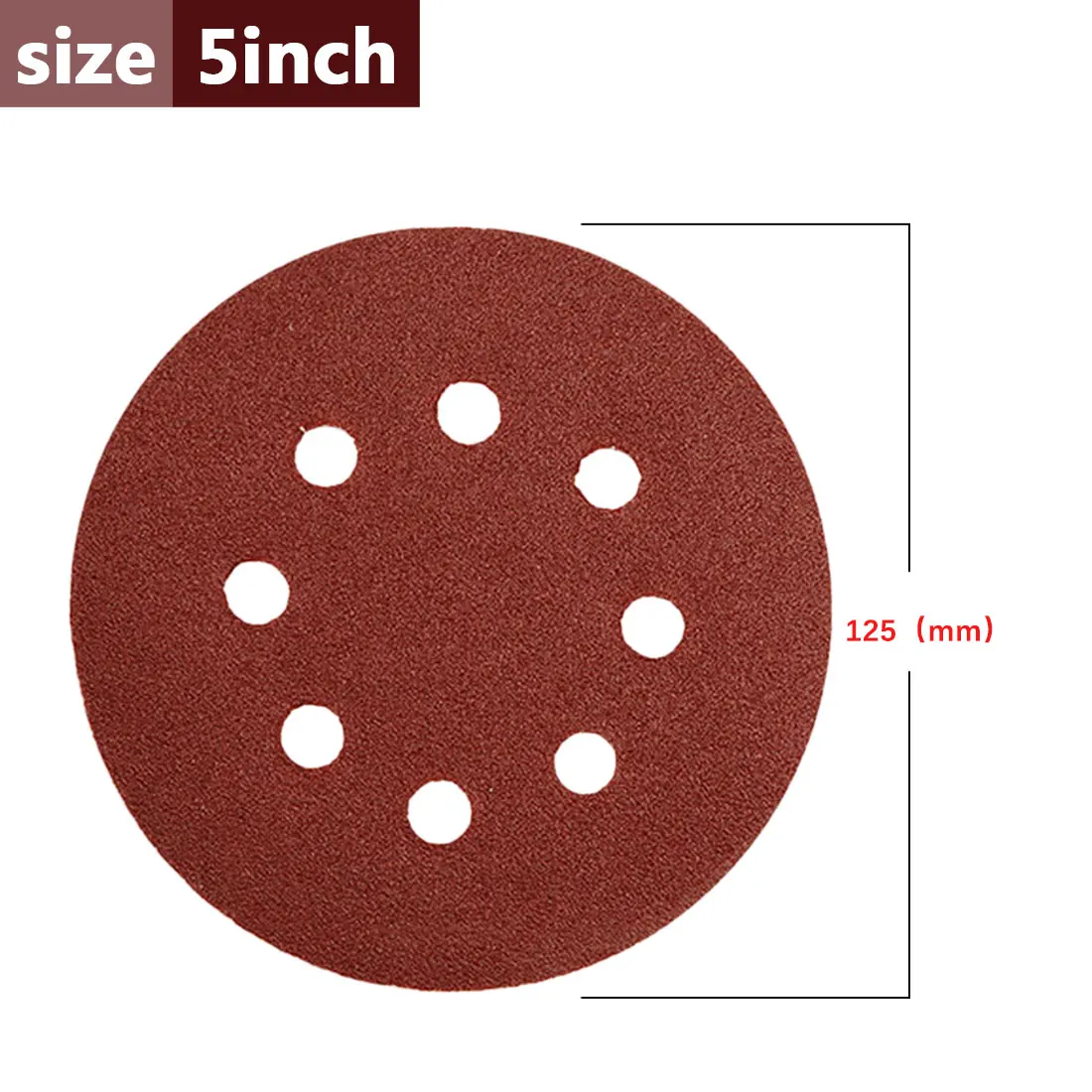 Тип: шлифовальный диск Материал: оксид алюминия Диаметр: прибл. 125 мм/5 дюймов Цвет: как показано на рисунке Количество отверстий: 8 отверстий Количество: 10 шт.