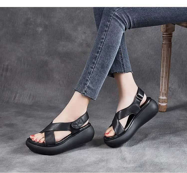 Сандалии женские в этническом стиле, повседневные босоножки на толстой подошве, танкетка на плоской подошве, римские сандалии в ретро стиле