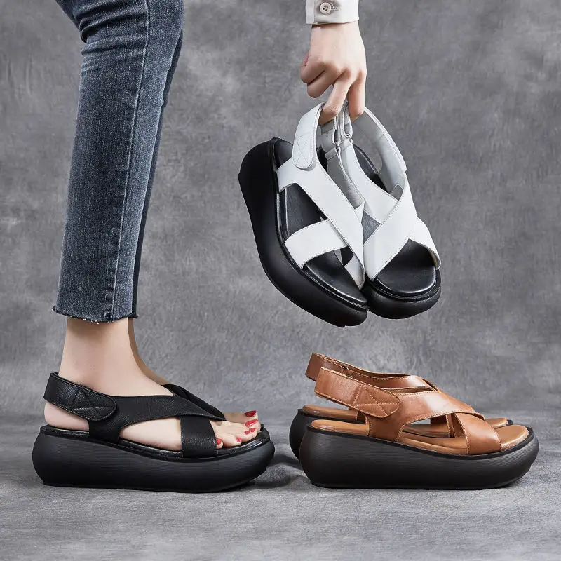 Кожаные сандалии; Мягкие кожаные сандалии для женщин на весну и лет...