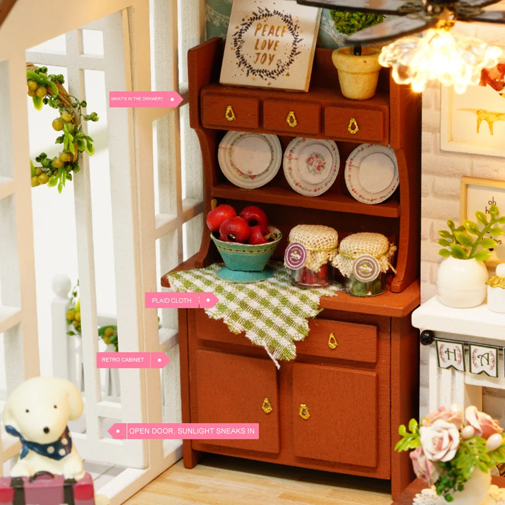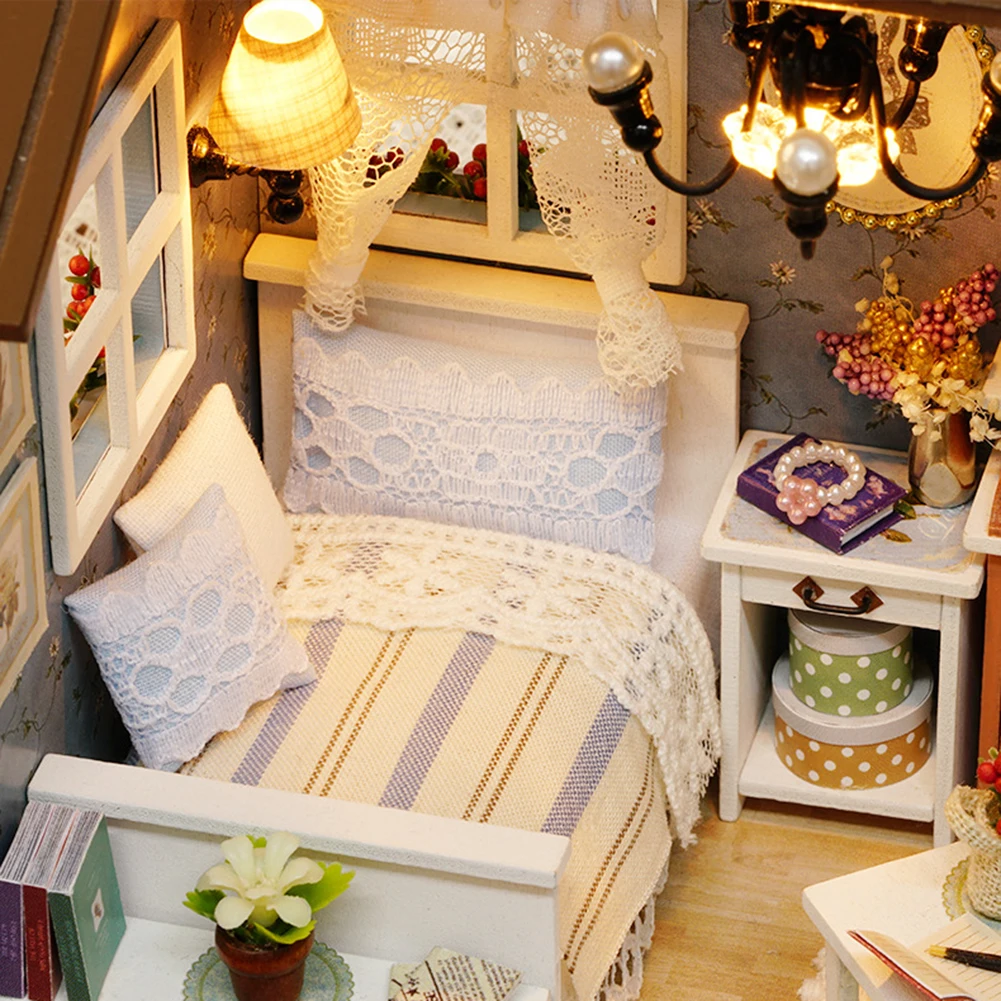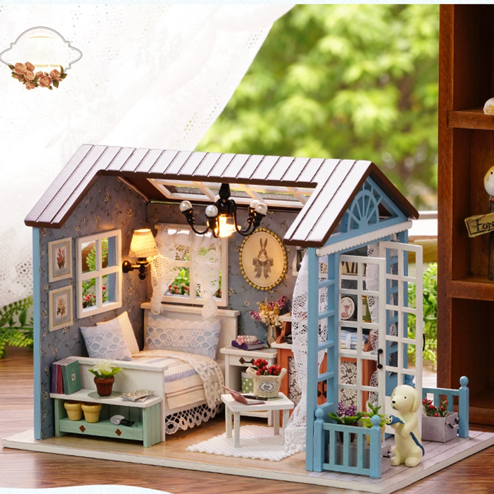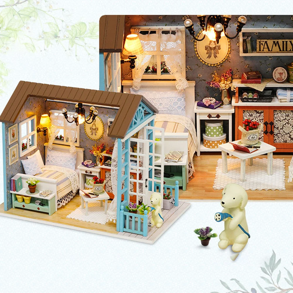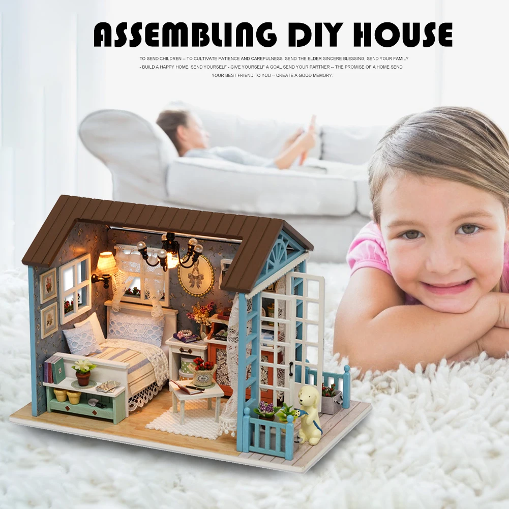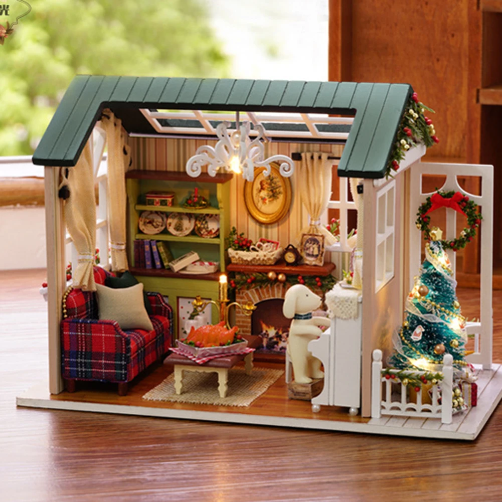 Деревянный Мини-кукольный домик сделай сам, ручная сборка, модель, праздничный домик, игрушка, кукольный дом игрушка ручной работы светильник