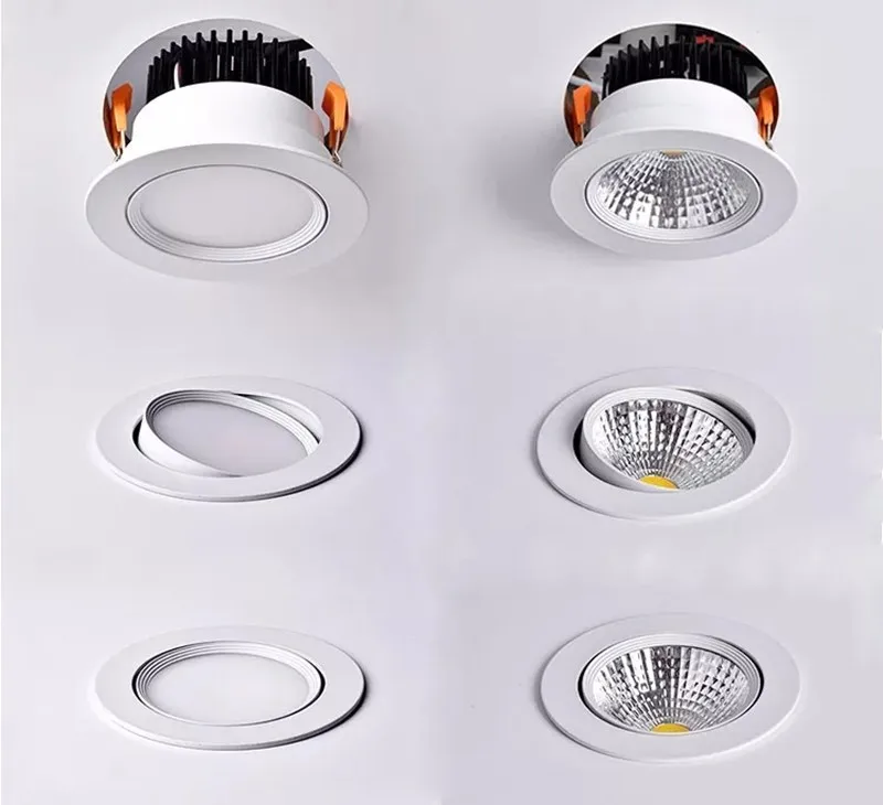 Затемнения светодиодный COB Точечный светильник потолочный светильник AC85-265V, 5 Вт, 7 Вт, 9 Вт, 12 Вт, 15 Вт, 18 Вт, Алюминий Утопленный вниз светильник s Круглый Светодиодный точечный светильник
