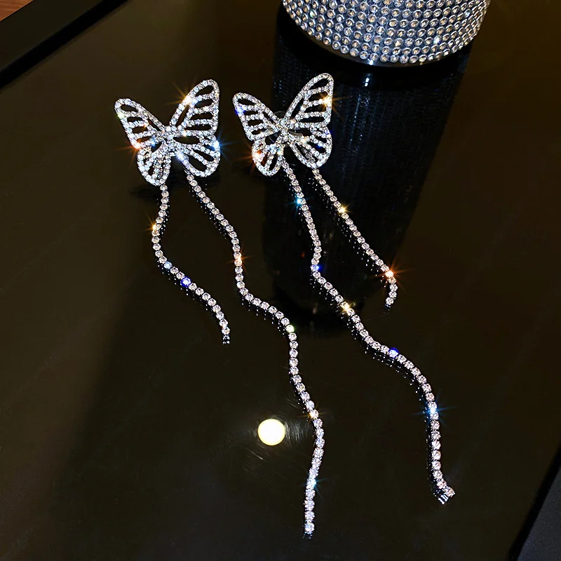 FYUAN длинные висячие серьги-кисточки Стразы для женщин полые бабочки Кристалл Висячие серьги Свадебные ювелирные изделия аксессуары