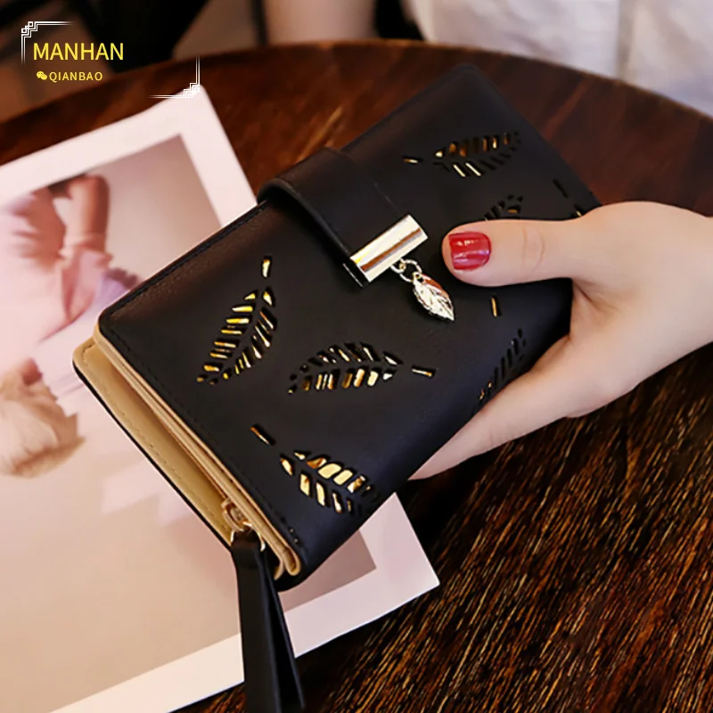 Женский кошелек с золотыми полыми листьями, Женский Длинный кошелек...