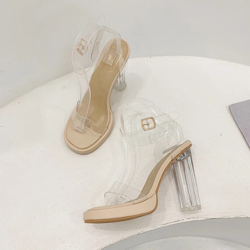 Сандалии женские на толстом квадратном каблуке, прозрачные босоножки из ПВХ, ремешок на щиколотке, обувь на толстой подошве, Plus39