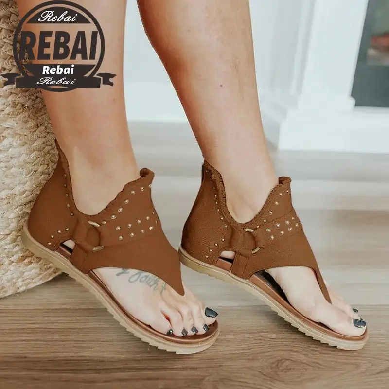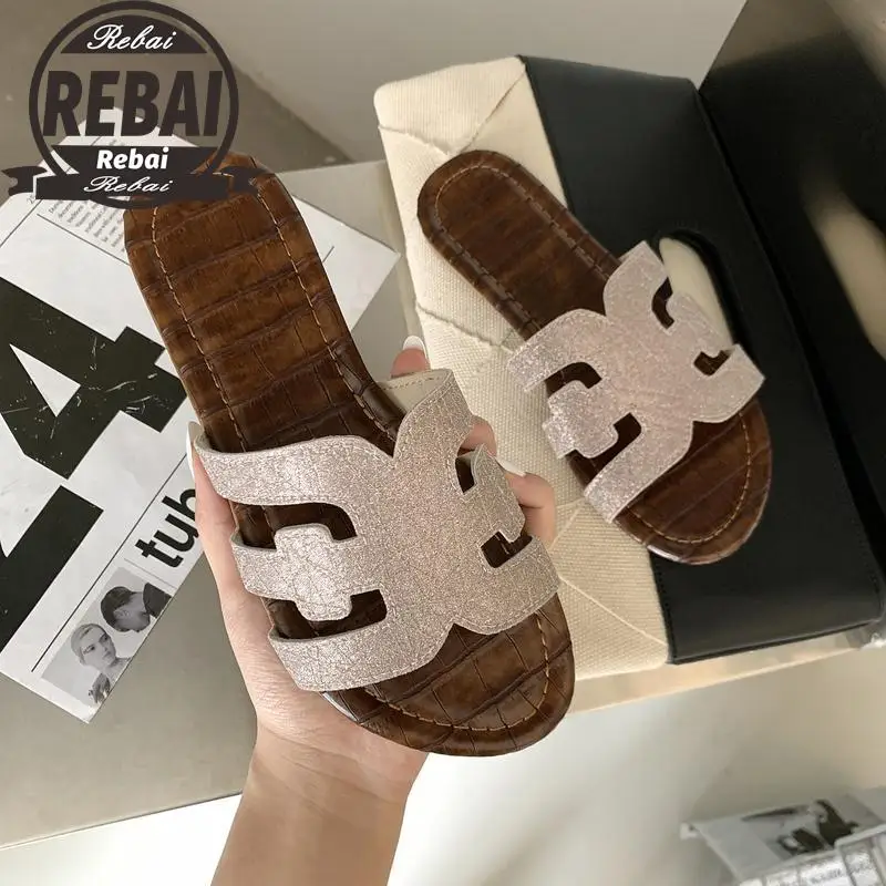 Сандалии Женские однотонные на плоской подошве, модные уличные тапо...