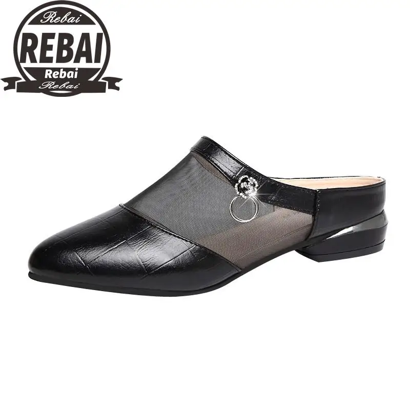 Женские шлепанцы без застежки, брендовые дизайнерские мюли с круглы...