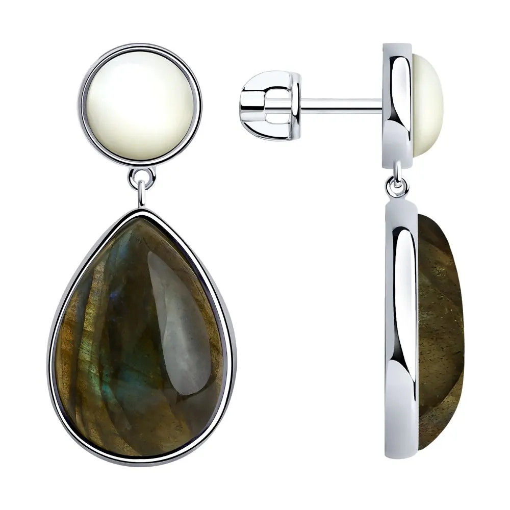 Серьги SOKOLOV из серебра с лабрадоритами, Серебро, 925, Женские, Серьги 2022 тренд, Оригинальная продукция
