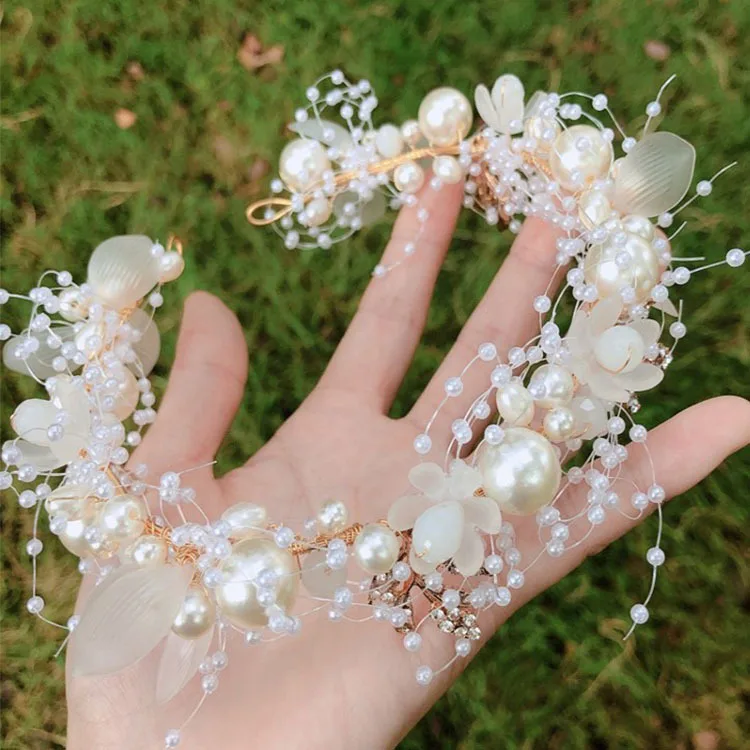 Свадебная повязка на голову с жемчужинами и цветами, модная свадебн...