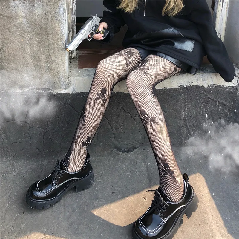 Чулки для девочек, черные колготки в стиле панк, с рисунком котенка, кошки, ажурные Чулочные изделия в стиле Harajuku, Нейлоновые женские колготки