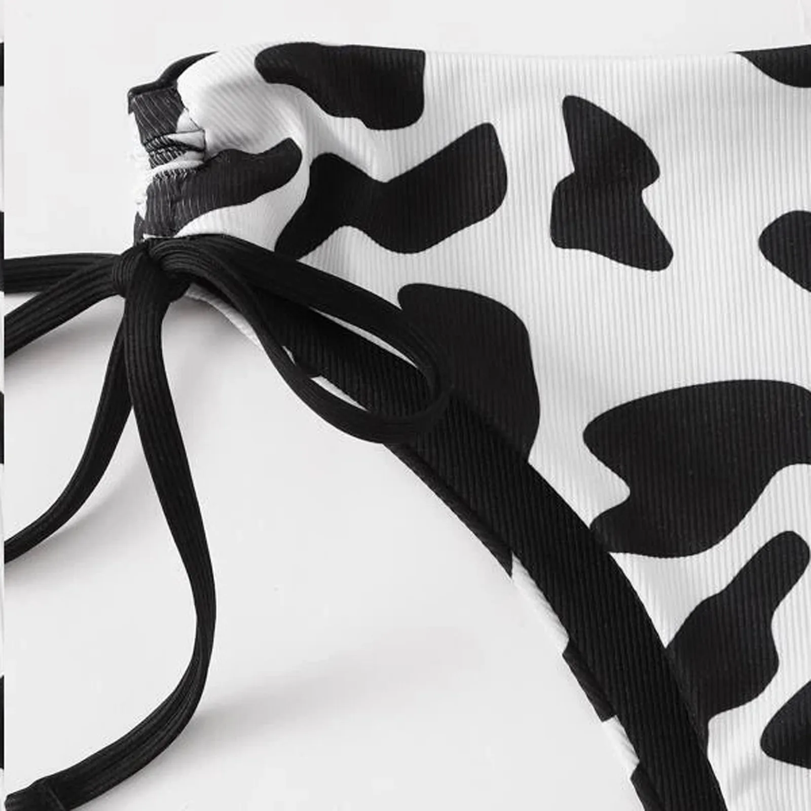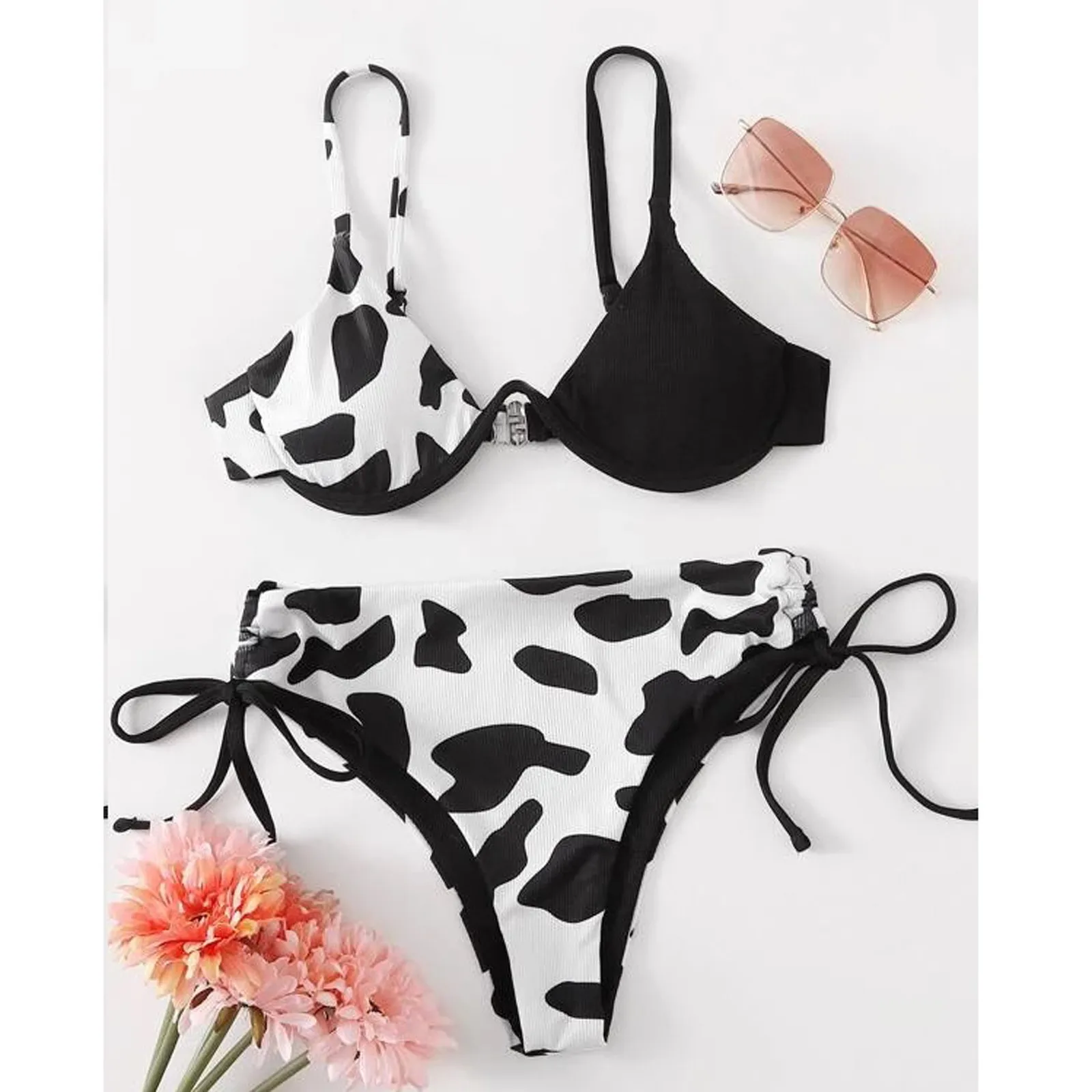 63 # купальник из двух частей для Для женщин бикини сексуальное с завышенной талией, однотонный цвет, на шнуровке Танкини Купальники пуш-ап с принтом коровы Юбка-брюки для девочек, многослойная юбка-пачка