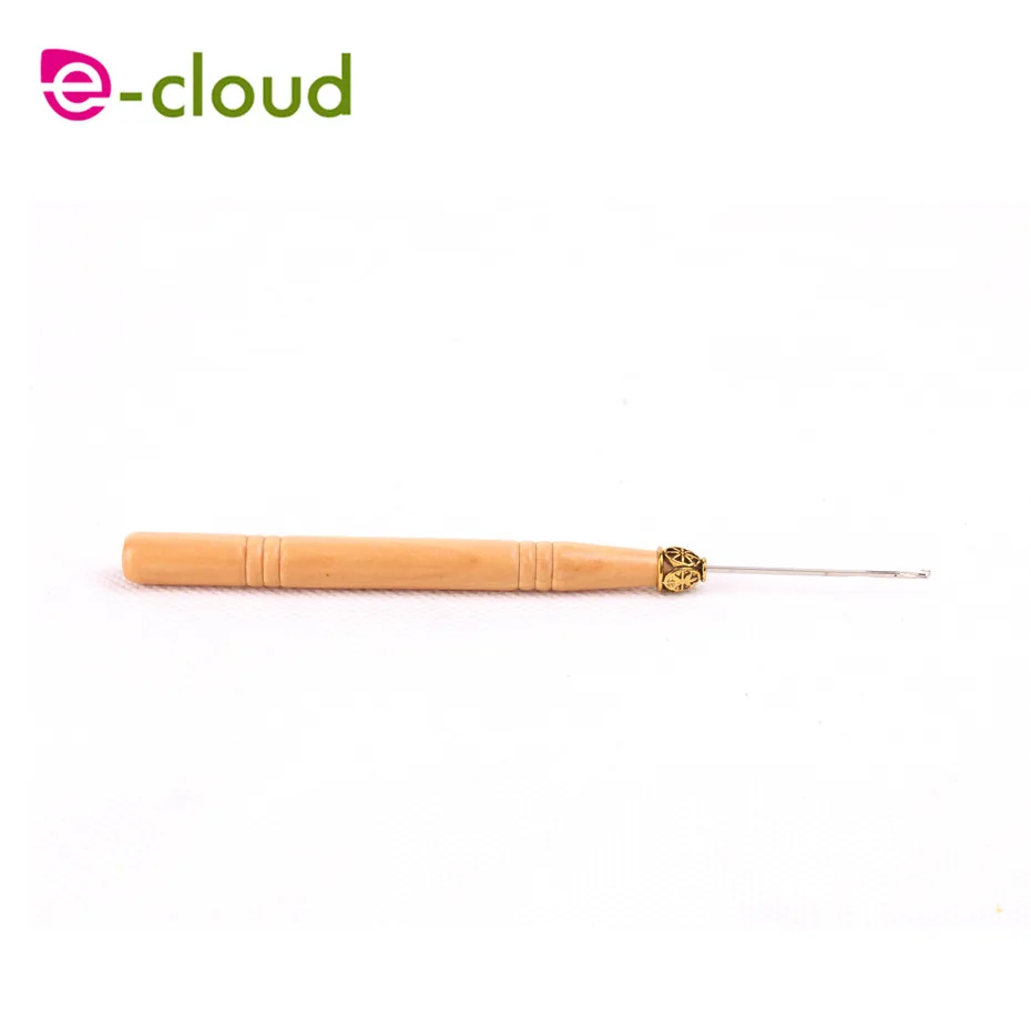 5 шт деревянной ручкой крюк игла с Железная проволока наращивание волос Инструменты парик шнурка делая Вязание волосы на микро-кольцах, петля ткачества крючком
