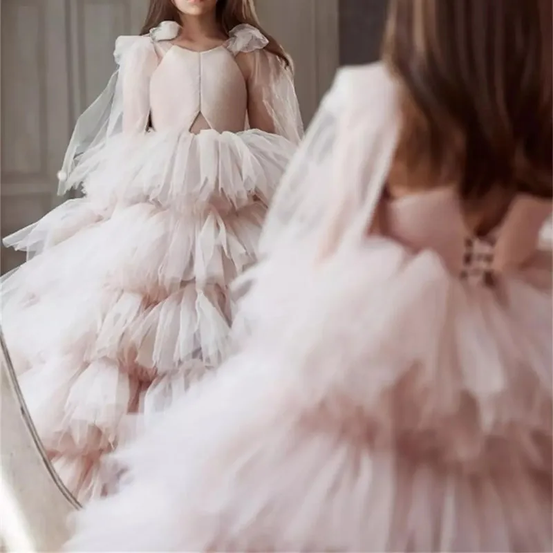 Платья принцессы с цветочным рисунком для девочек на свадьбу с оборками многоярусные фатиновые платья принцессы для конкурса детское платье для первого причастия