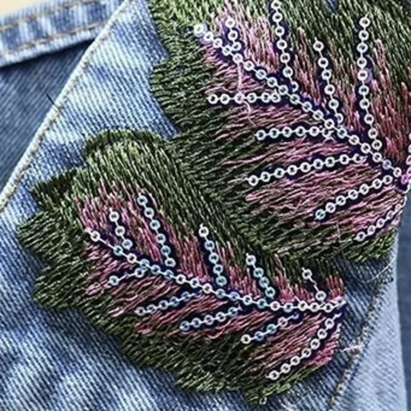 Женская джинсовая куртка с вышивкой, Повседневная Свободная короткая куртка с длинным рукавом и блестками, уличная одежда для студентов, осень 2021