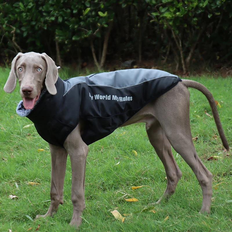 Куртка для больших собак, меховой воротник, зимняя одежда для домашних животных со съемной шлейкой, светоотражающая одежда для больших собак, водонепроницаемая куртка-жилет для домашних животных