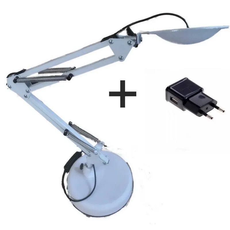 Настольная лампа светодиодная , подставка, 48 LED, двух-коленная ,блок питания USB, белая, Офисная лампа, для школы.