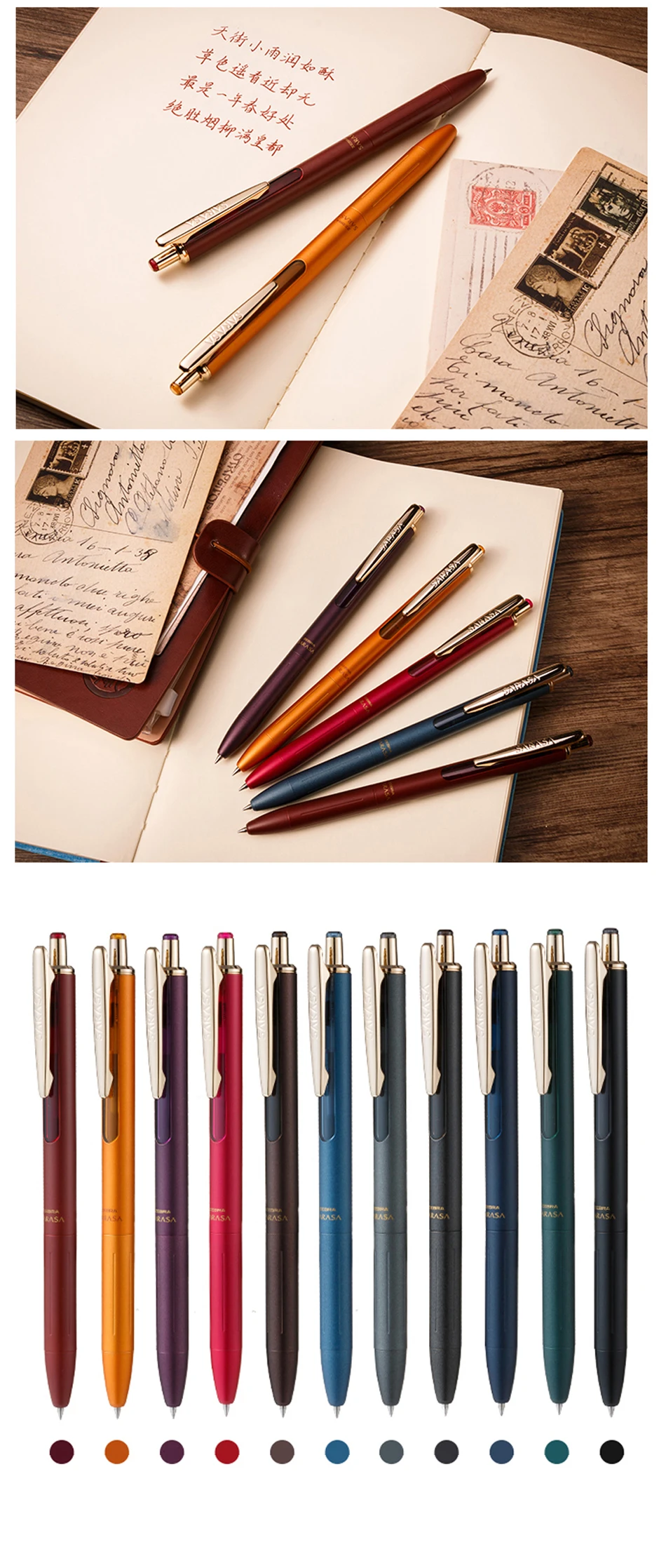 Гелевая ручка ZEBRA Sarasa JJ15, японская винтажная ручка с металлическим корпусом, гладкое и удобное письмо