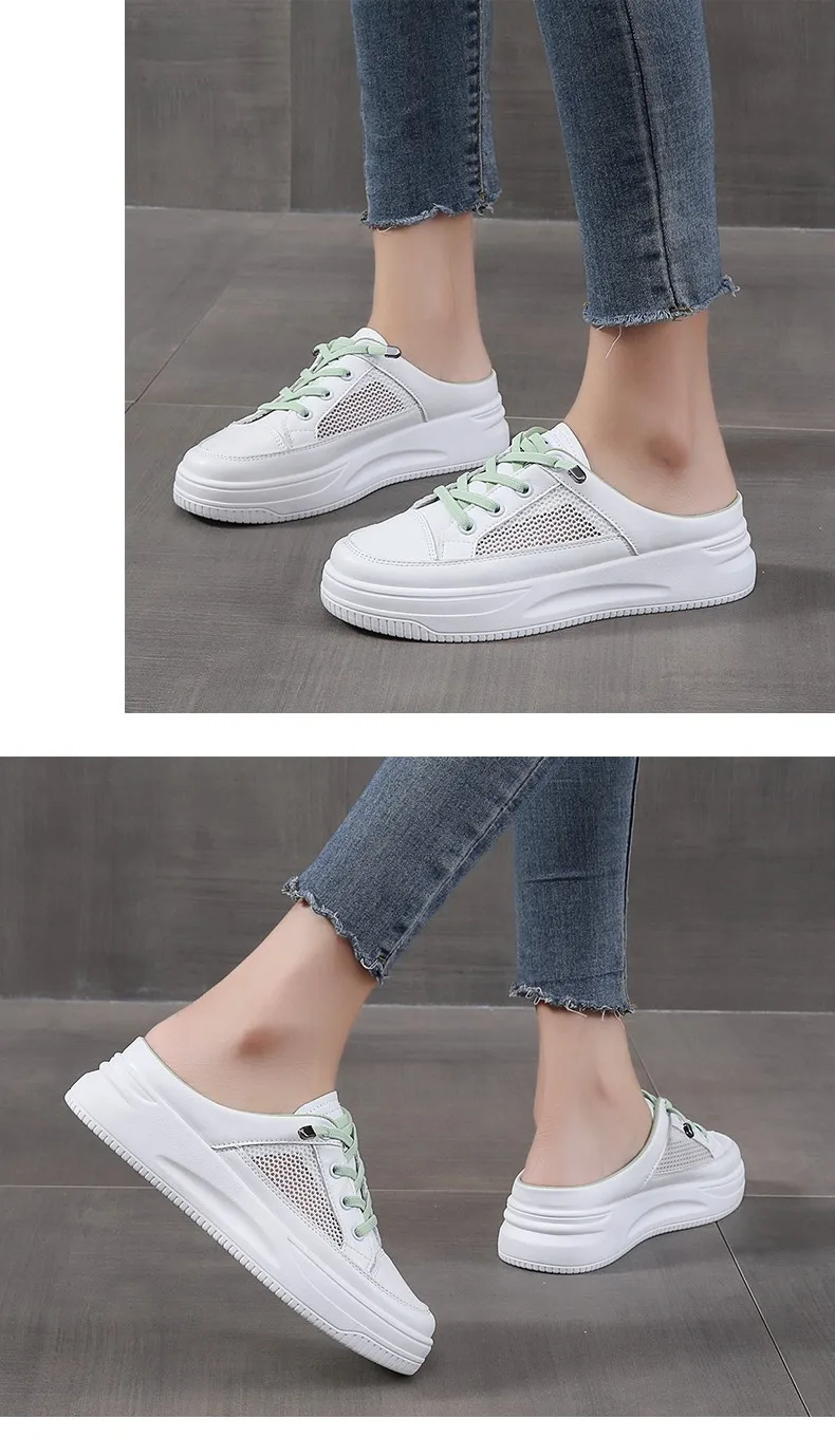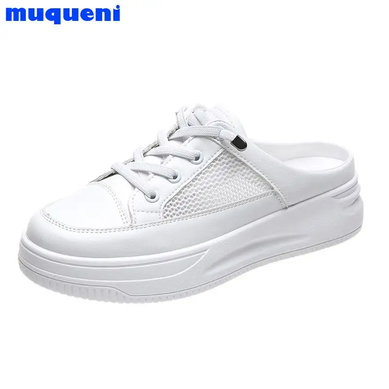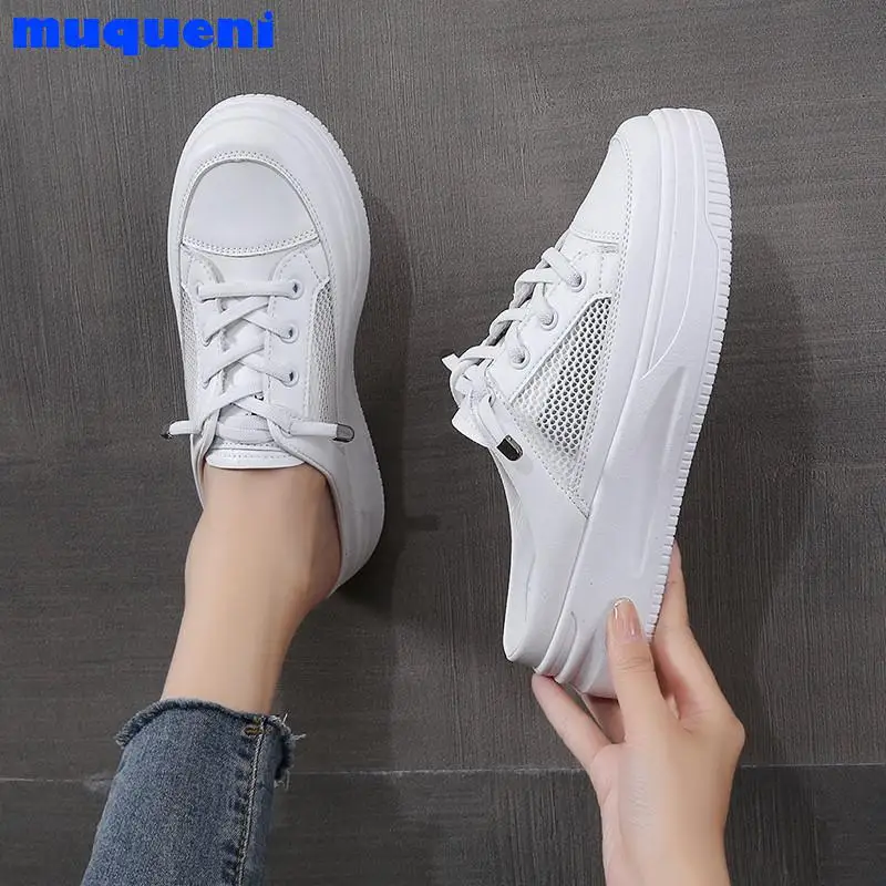 Женские сетчатые туфли, повседневные низкие кроссовки без каблука 4 см, на шнуровке, белые, лето 2021