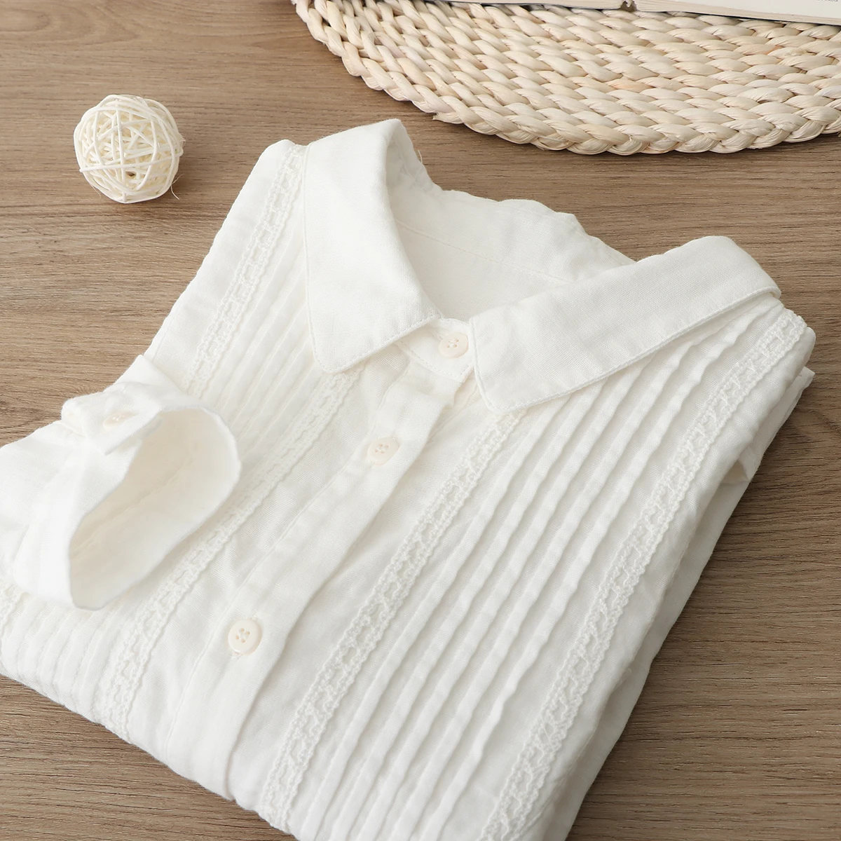 Lamtrip уникальный плиссированный бутик супер мягкая двухслойная хлопковая пряжа с длинным рукавом белая рубашка блузка винтажный Топ