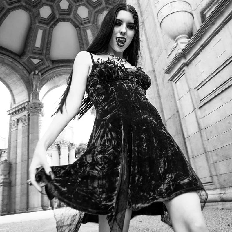 Винтажное сексуальное кружевное платье-мини InsGoth в готическом ст...